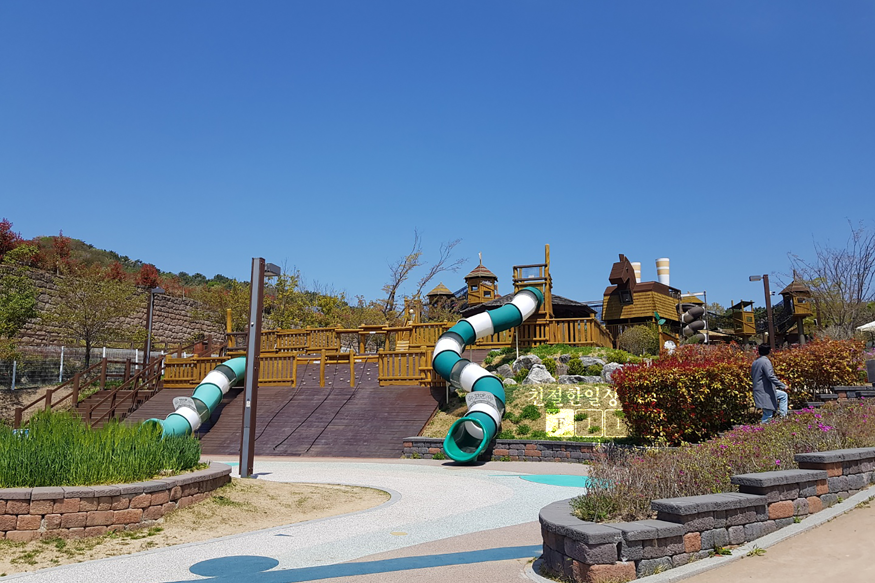 아이들이 마음껏 뛰어놀고 좋아하게 잘 만들어 놓았다. 아이가 놀고 있는 동안 어른은 따라다니기도 하고 근처 의자나 그늘에 앉아서 쉬기도 한다.