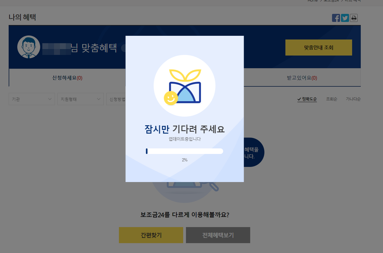 보조금24 맞춤혜택 조회 & 현재 받고 있는 내역 확인하기