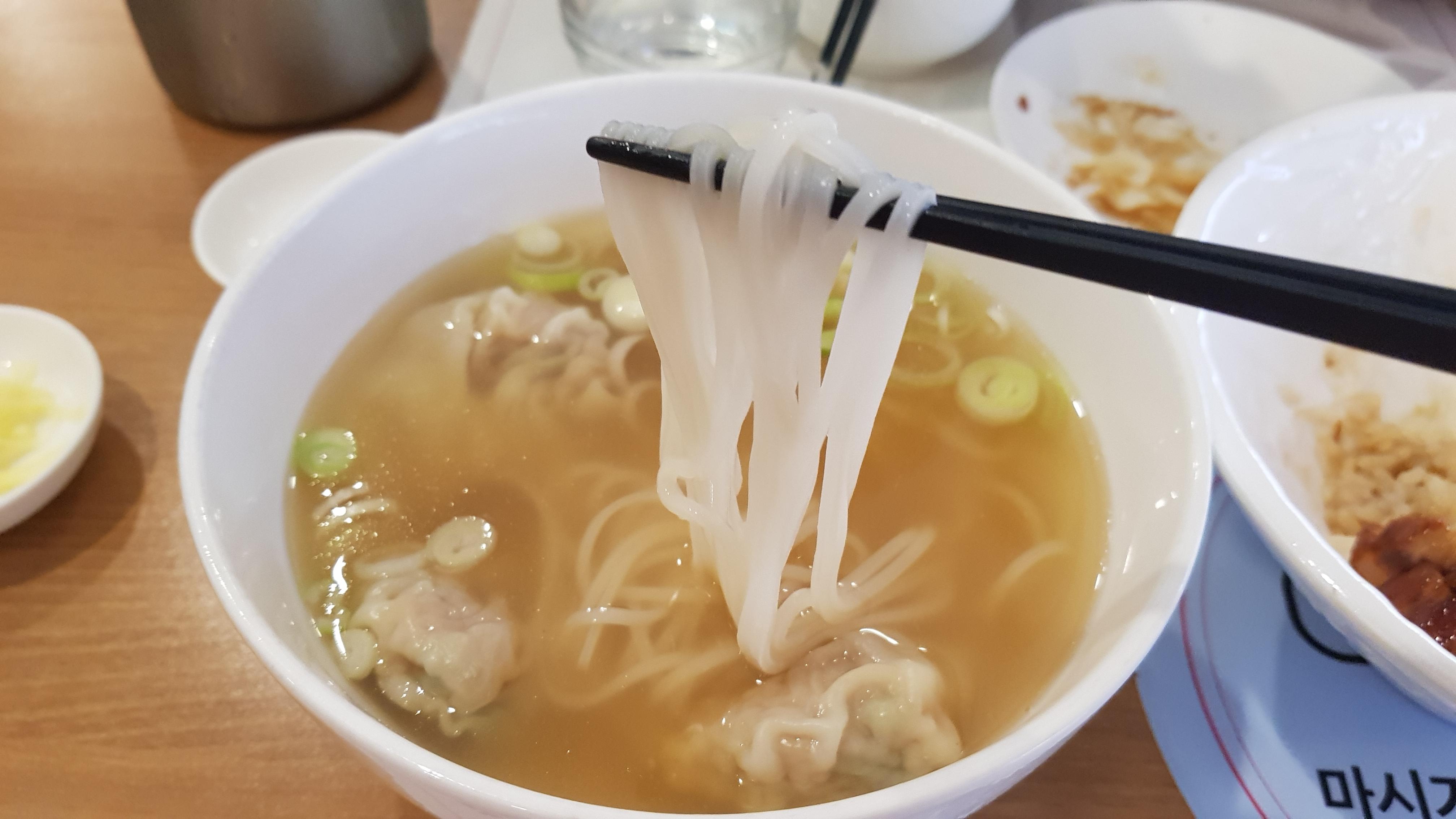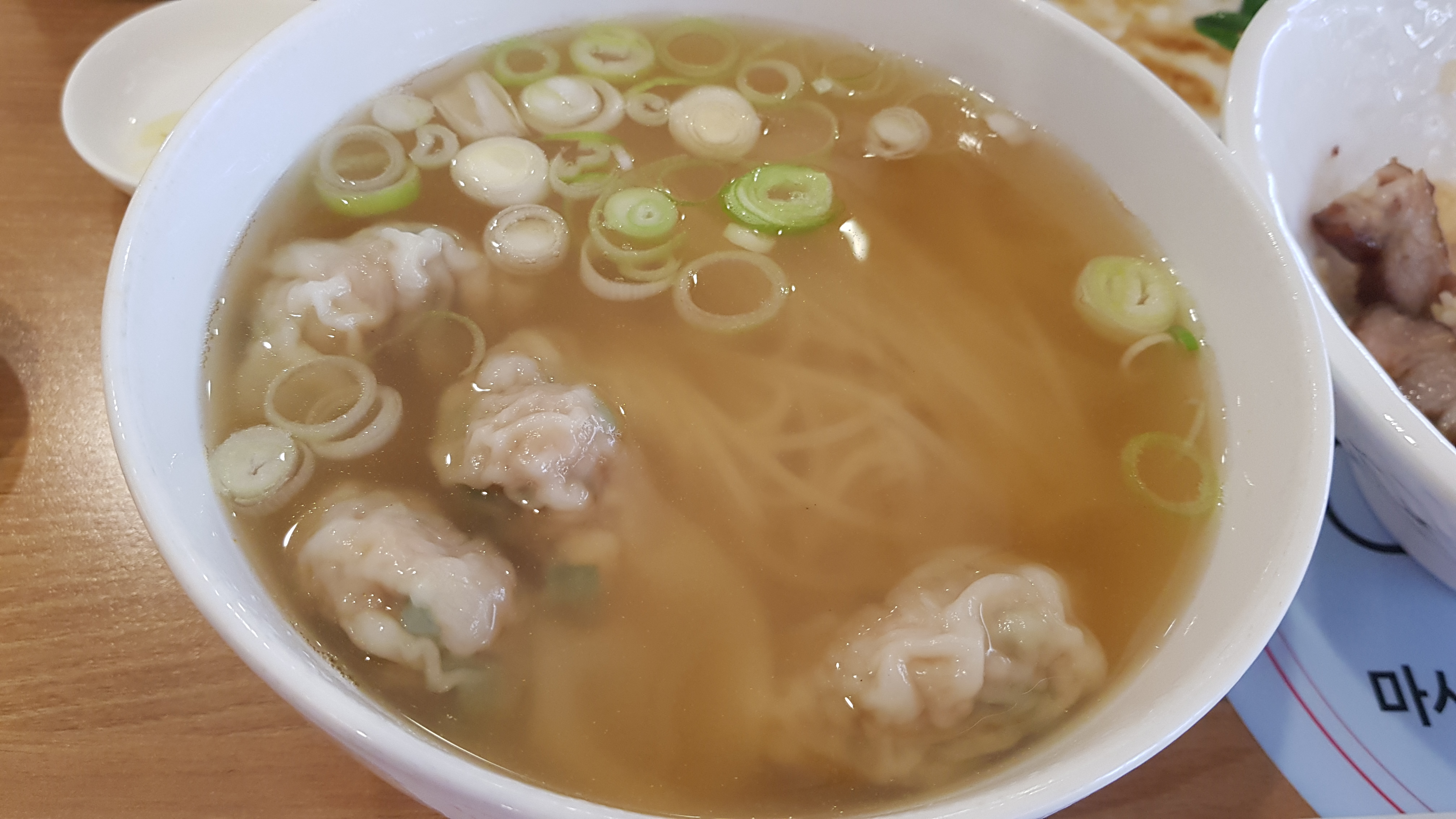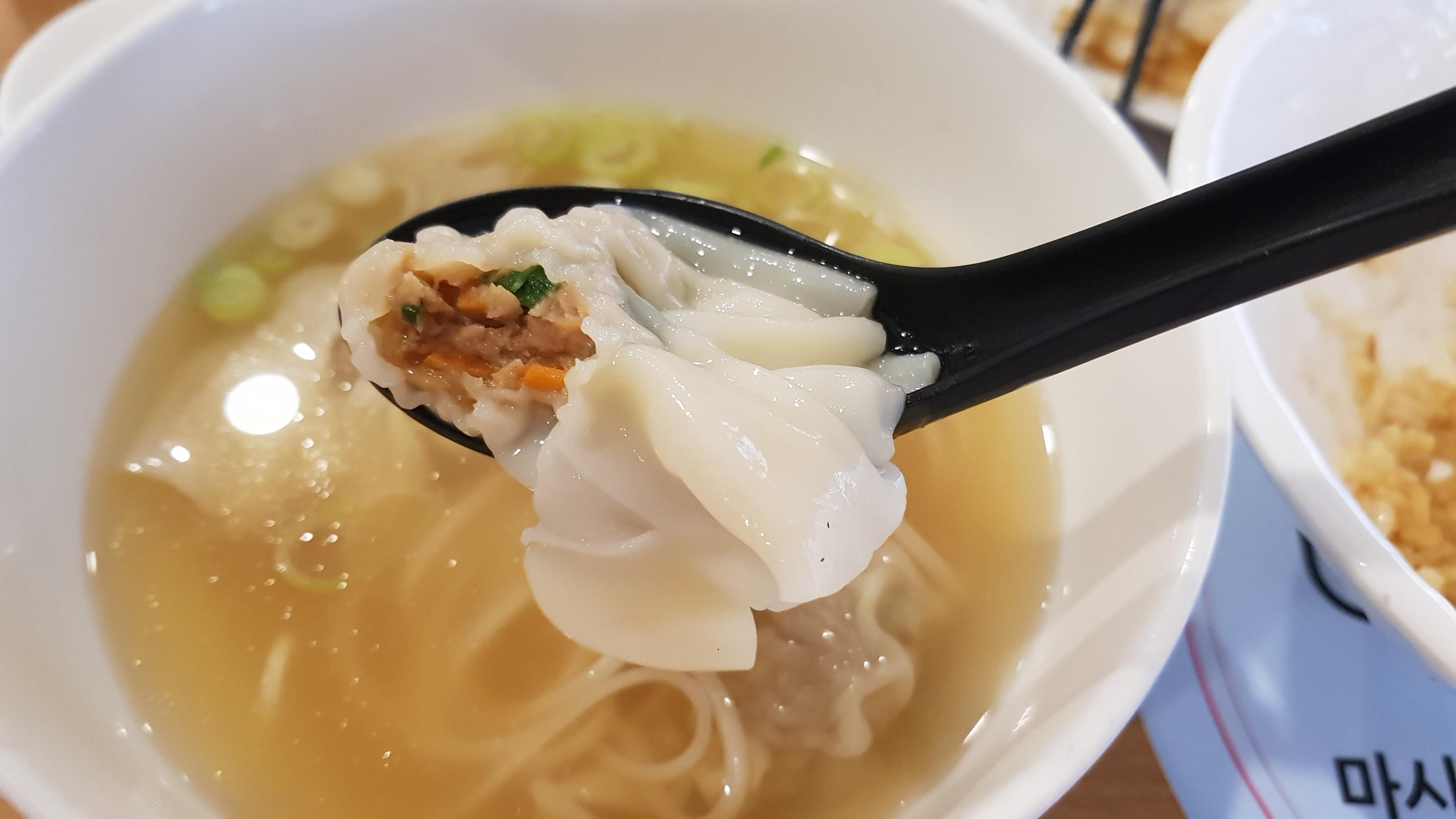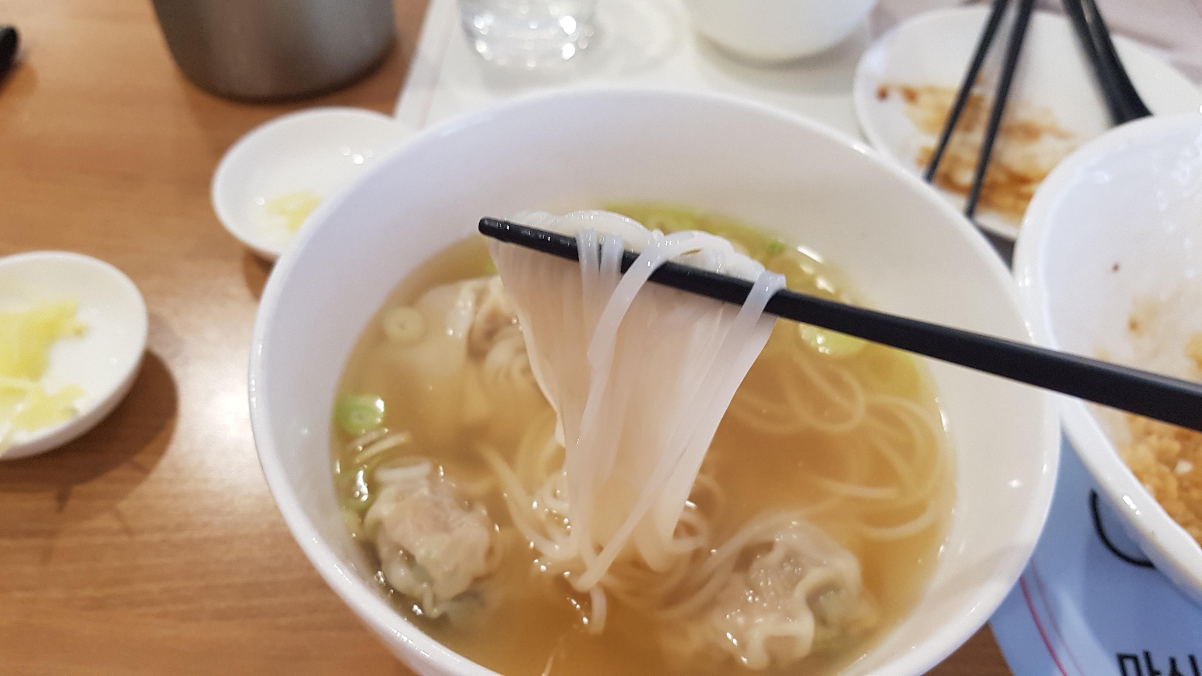 매콤한 메뉴를 하나 맛본다고 주문한 완툰탕쌀면이다. 딱 봐도 매운맛과는 거리가 먼 메뉴이다. 잘 못 주문했다. 그래도 깊은 국물맛도 좋았고 야들한 면과 만두도 괜찮았다.