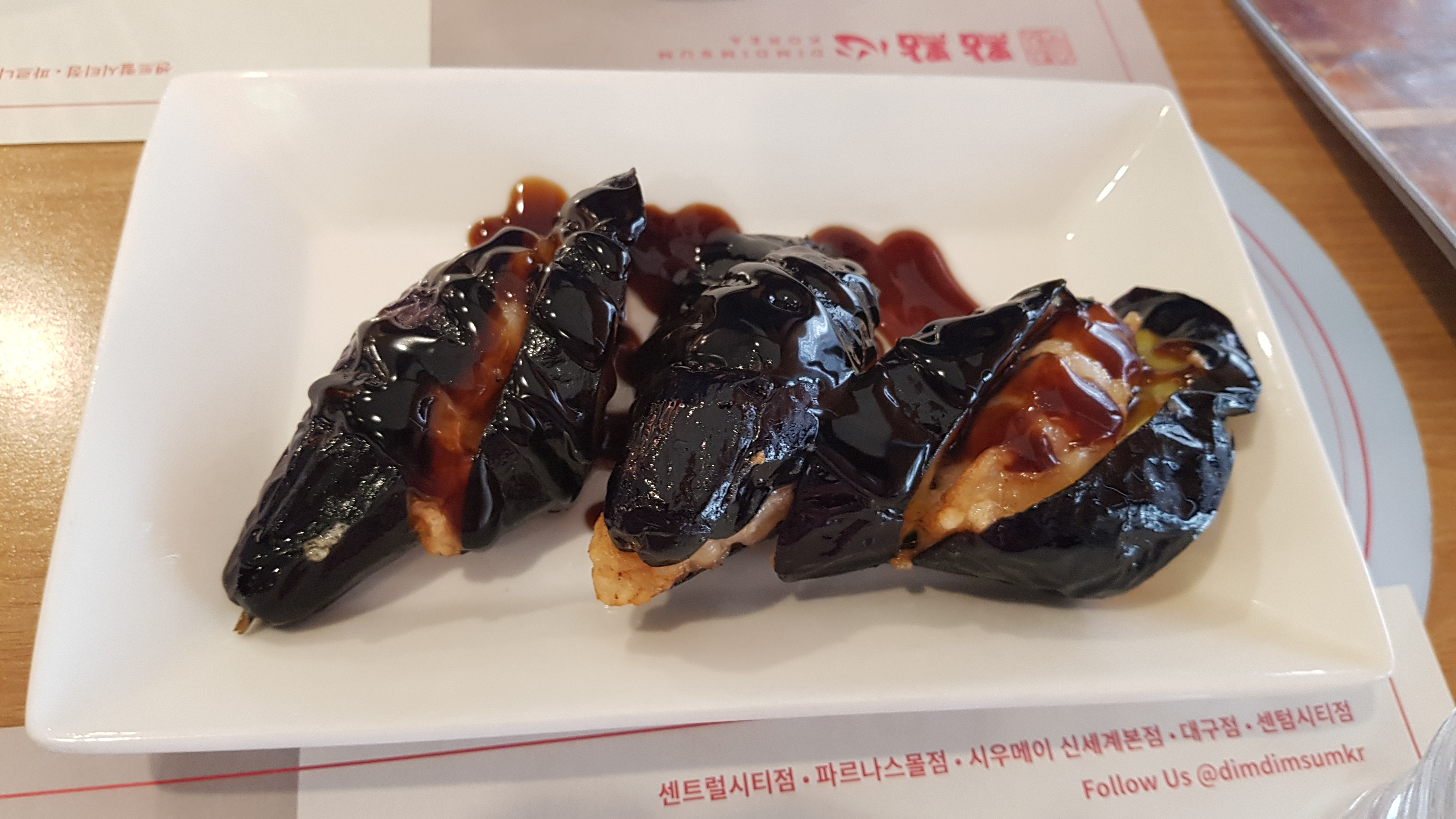 가지딤섬의 첫인상은 이렇듯 특이하고 별로이다. 가지요리를 좋아하지 않지만 인기메뉴인 별을 달았고 여기저기 인터넷서 많이 추천하기에 주문해 보았다.