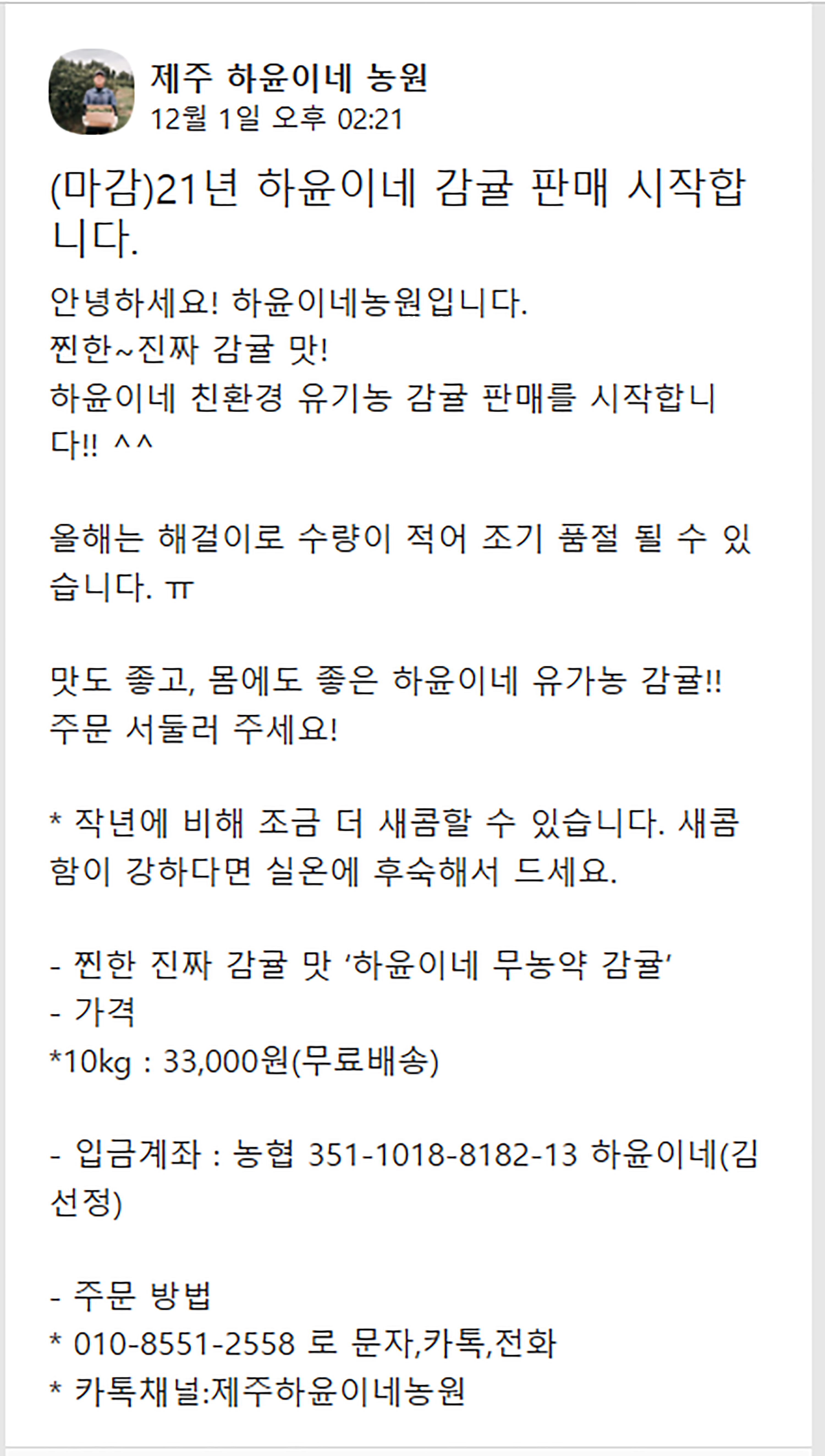 ㅣ친환경 노지 감귤 가격 (2021년 겨울)