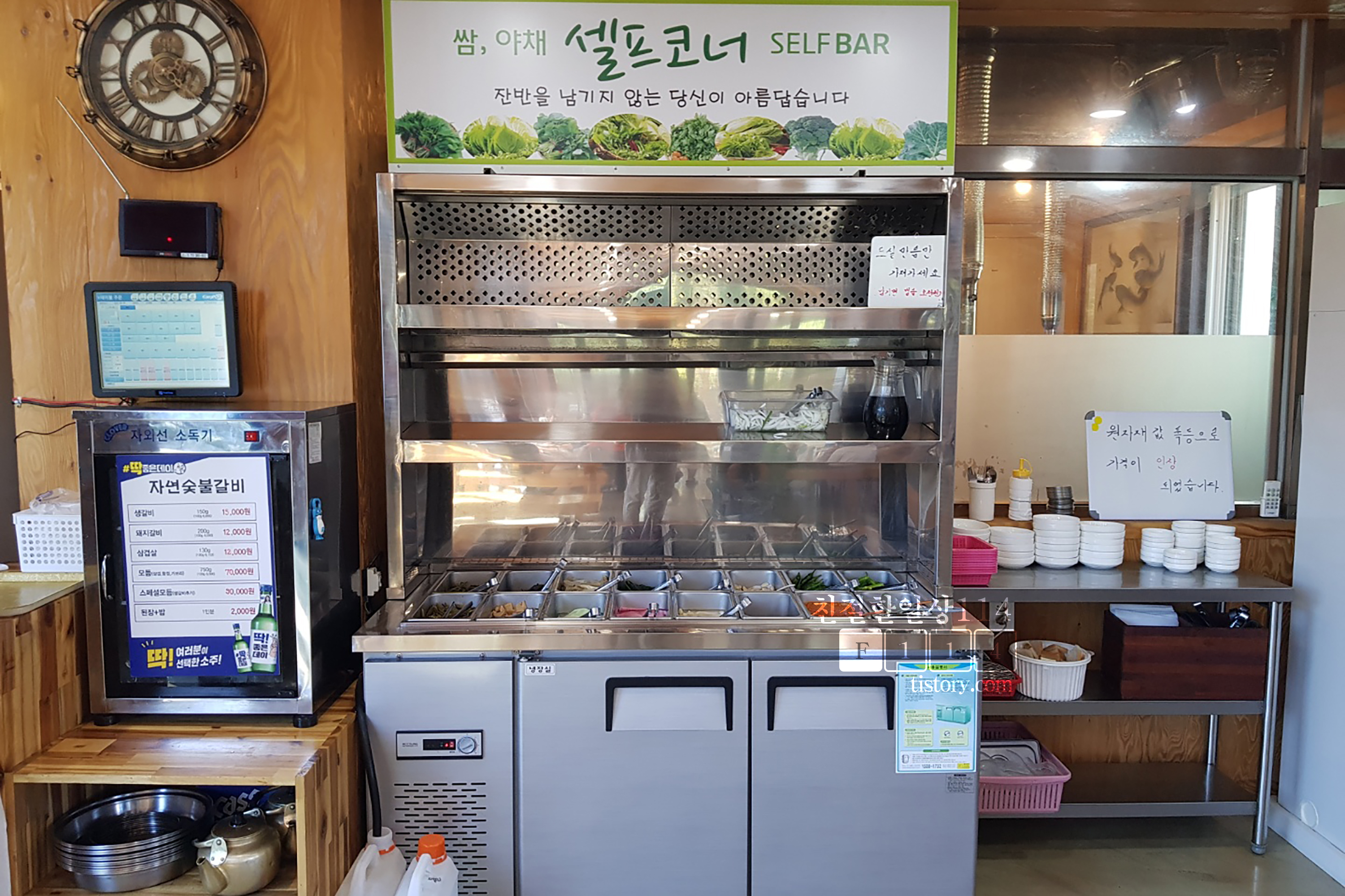 한쪽에 셀프코너가 있어서 부족한 야채나 밑반찬을 가져다 먹을 수 있다.