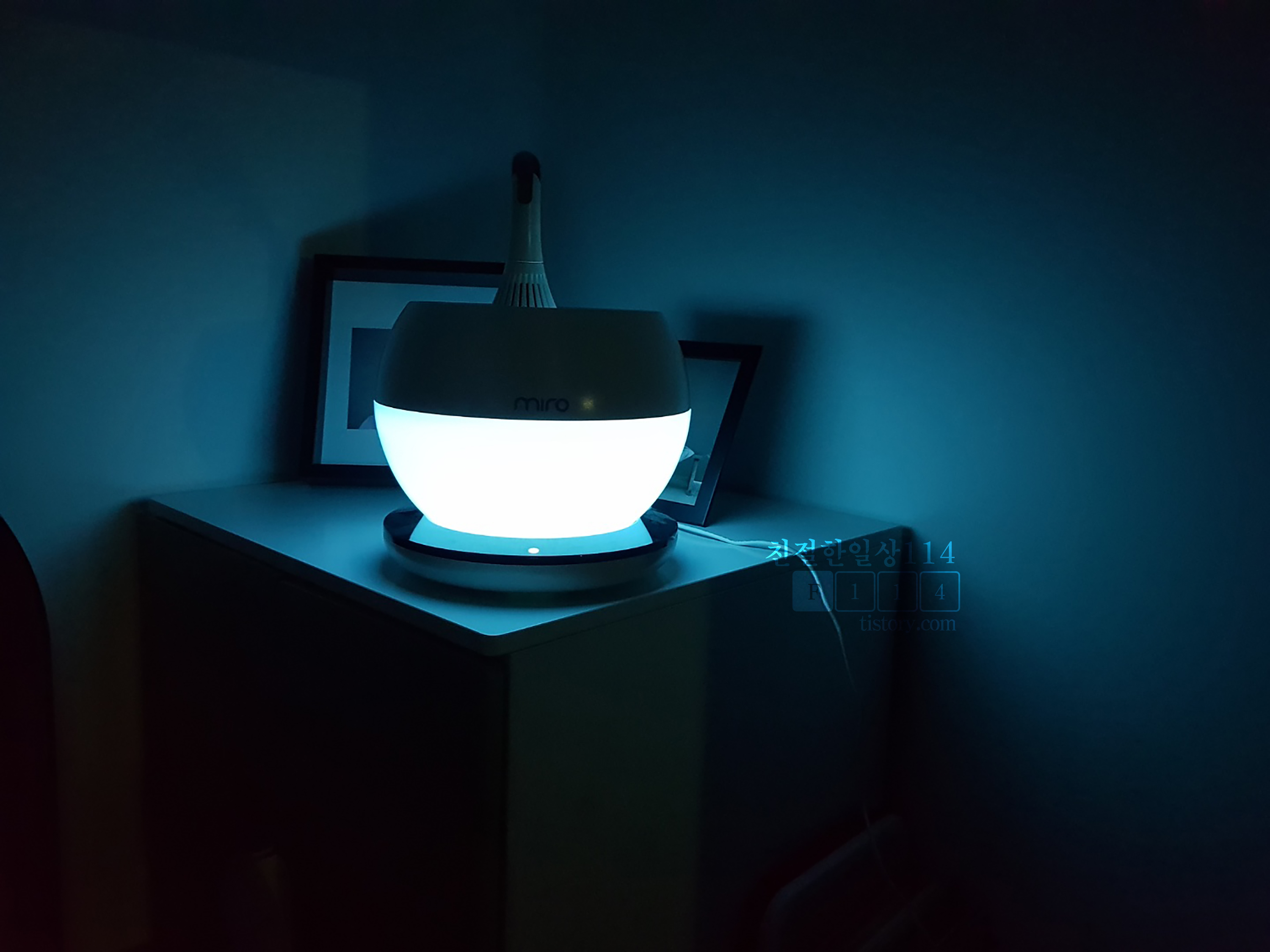 - 디자인: 둥근 원형모양의 본체도 디자인적으로 훌륭하고 이쁘다. 더욱이 어두워 졌을때는 시시각각 바뀌는 은은한 간접조명이 더욱 이쁘고 몽환적 분위기를 만들어 낸다.
