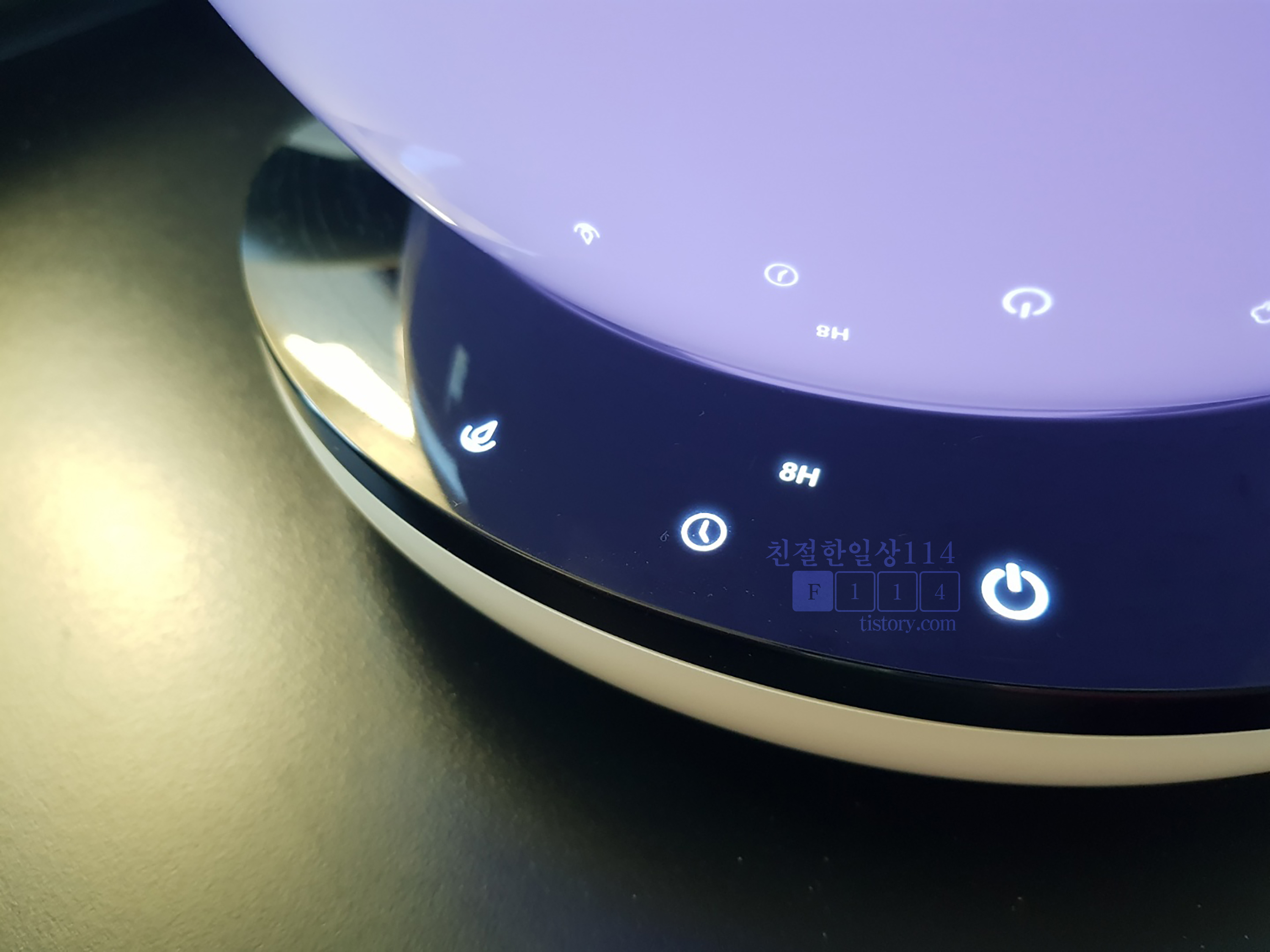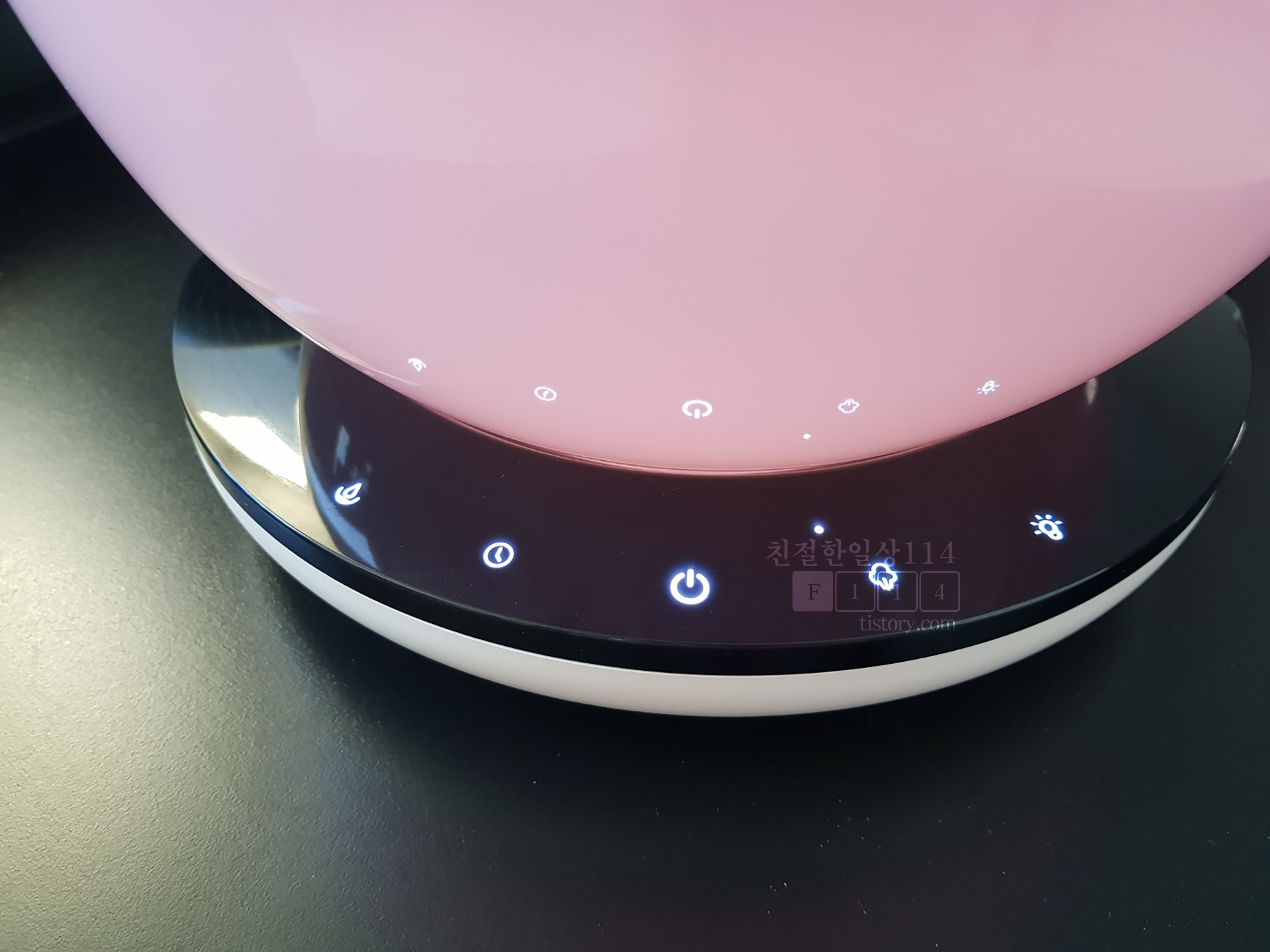 조작은 받침에 있는 버튼을 터치식으로 누르면 되고 버튼은 그림으로 알기쉽게 표시되어 있어서 어렵지 않다. 디자인도 훌륭하고 은은하게 나오는 간접조명이 상당히 매력적이다.