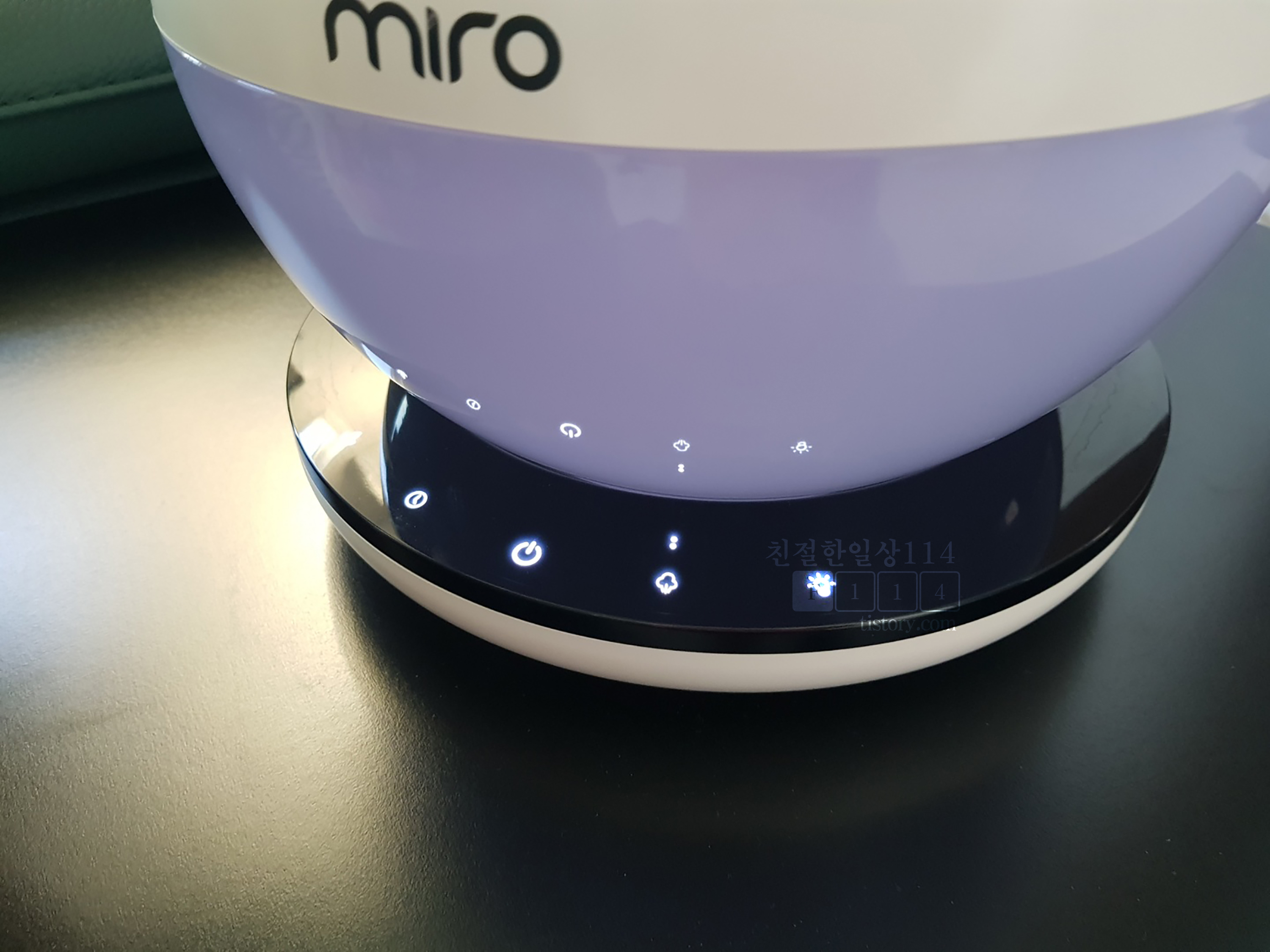 조작은 받침에 있는 버튼을 터치식으로 누르면 되고 버튼은 그림으로 알기쉽게 표시되어 있어서 어렵지 않다. 디자인도 훌륭하고 은은하게 나오는 간접조명이 상당히 매력적이다.