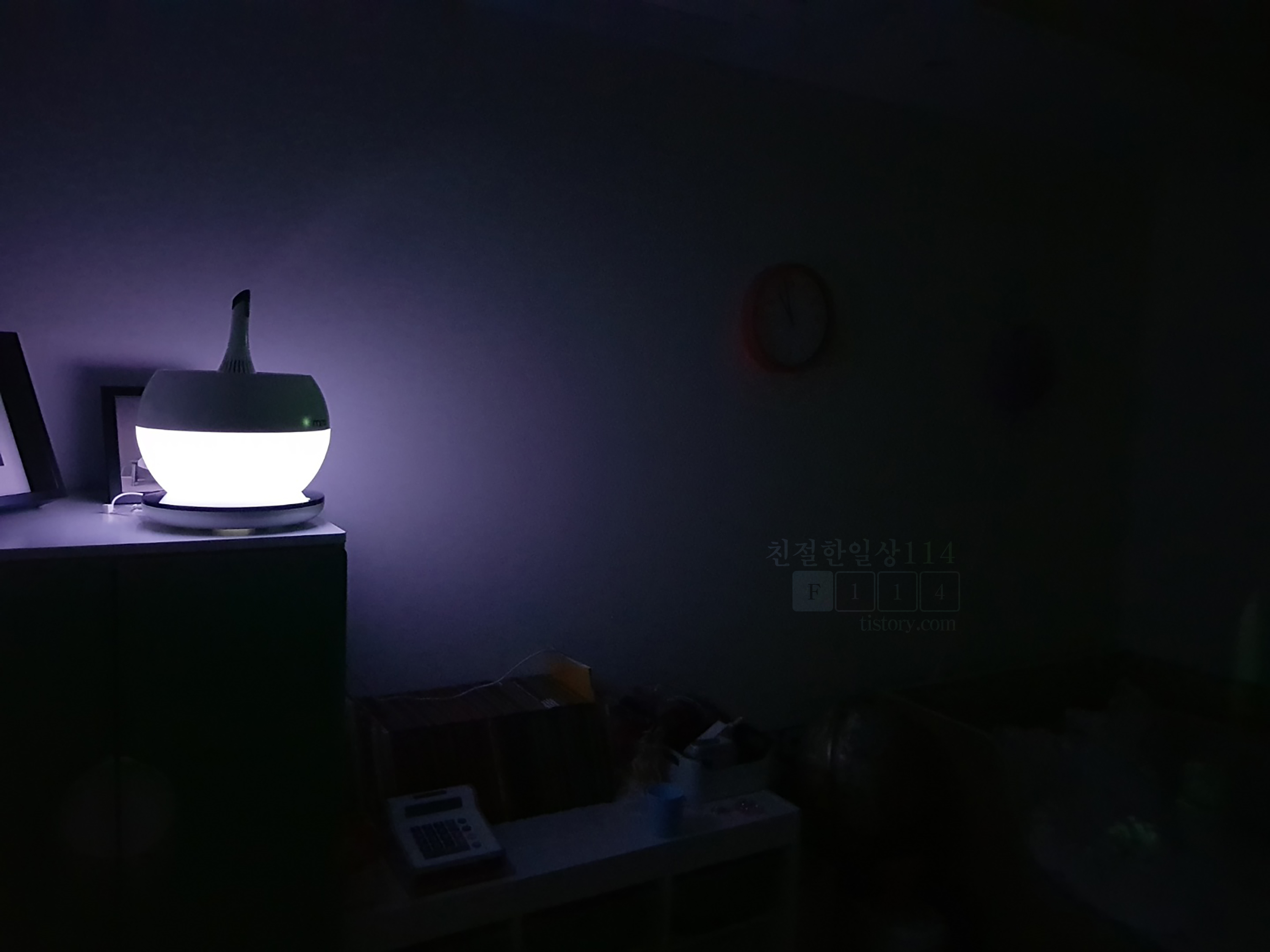 - 디자인: 둥근 원형모양의 본체도 디자인적으로 훌륭하고 이쁘다. 더욱이 어두워 졌을때는 시시각각 바뀌는 은은한 간접조명이 더욱 이쁘고 몽환적 분위기를 만들어 낸다.