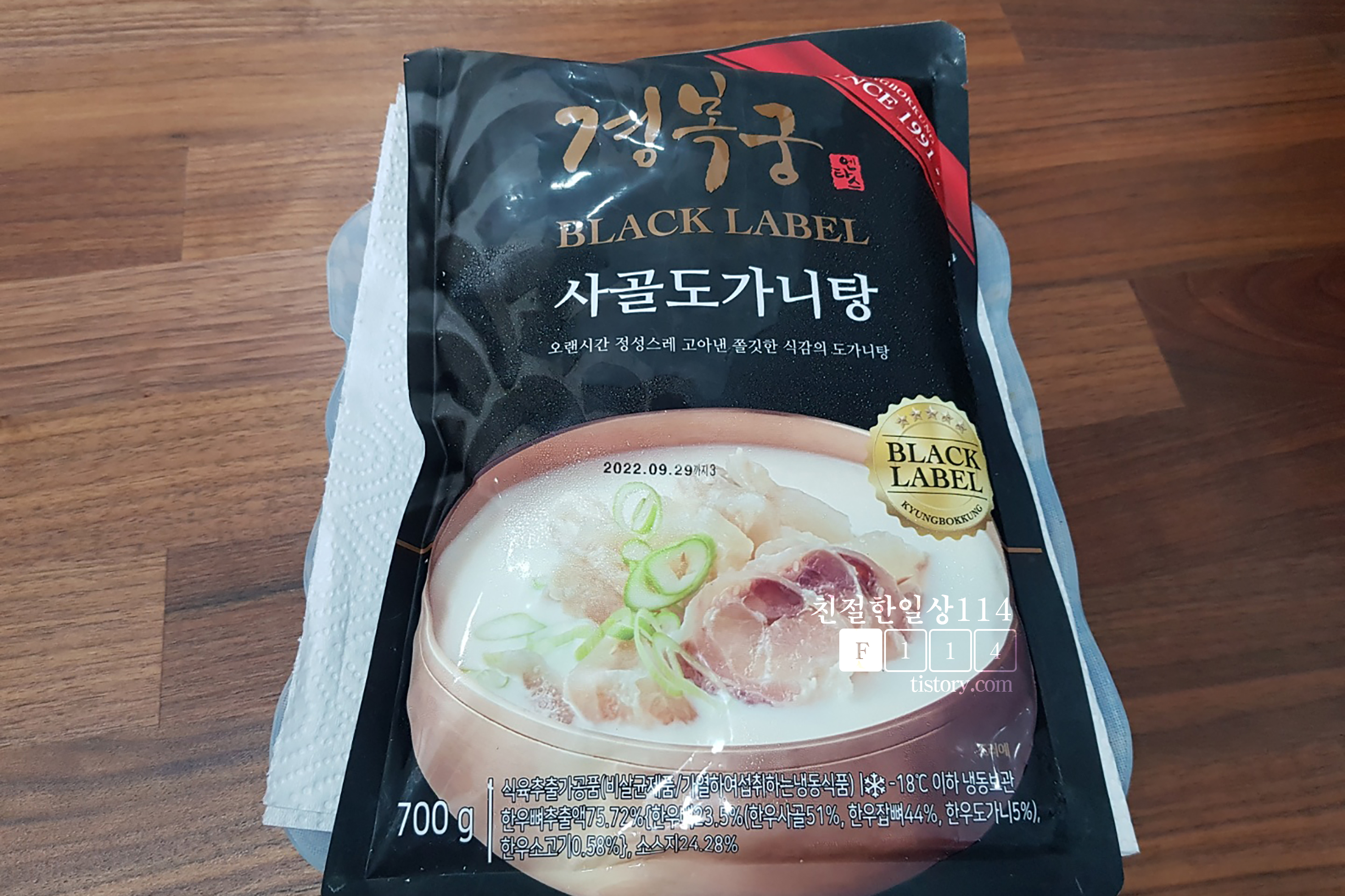 뜨끈한 사골육수에 야들야들한 도가니와 탱탱한 식감의 스지가 들어간 음식 도가니탕. 진한 곰탕에 잘 익은 김치랑 먹어도 맛있긴 하지만 곰탕에는 없는 탱글 야들한 식감을 도가니탕에서는 맛볼 수 있기 때문에 더 좋아한다. 이 도가니는 소 한마리에서 나오는 양이 많지 않다 보니 비싸기도 하지만 도가니탕에 도가니로만 넣지 않고 대부분 비슷한 스지를 섞어 넣는 경우가 많다. 우리가 사서 먹는 시중의 도가니탕은 대부분 스지로만 들어가거나 그나마 괜찮은 식당은 도가니를 조금 섞어서 판매하고 있다. 도가니탕에 대한 설명은 이정도로 하고 이 도가니탕을 먹고 싶어서 인터넷으로 주문한다. 식당에 가서 사먹으면 한그릇에 1만5천원 넘기도 하고 코로나로 시끄러운 요즘 식당에 가서 먹기보다는 집에서 먹는 것을 선호하기 때문이다. 인터넷에서 맛과 평이 좋은 경복궁 사골도가니탕을 집으로 주문해 끓여서 맛을 본다.