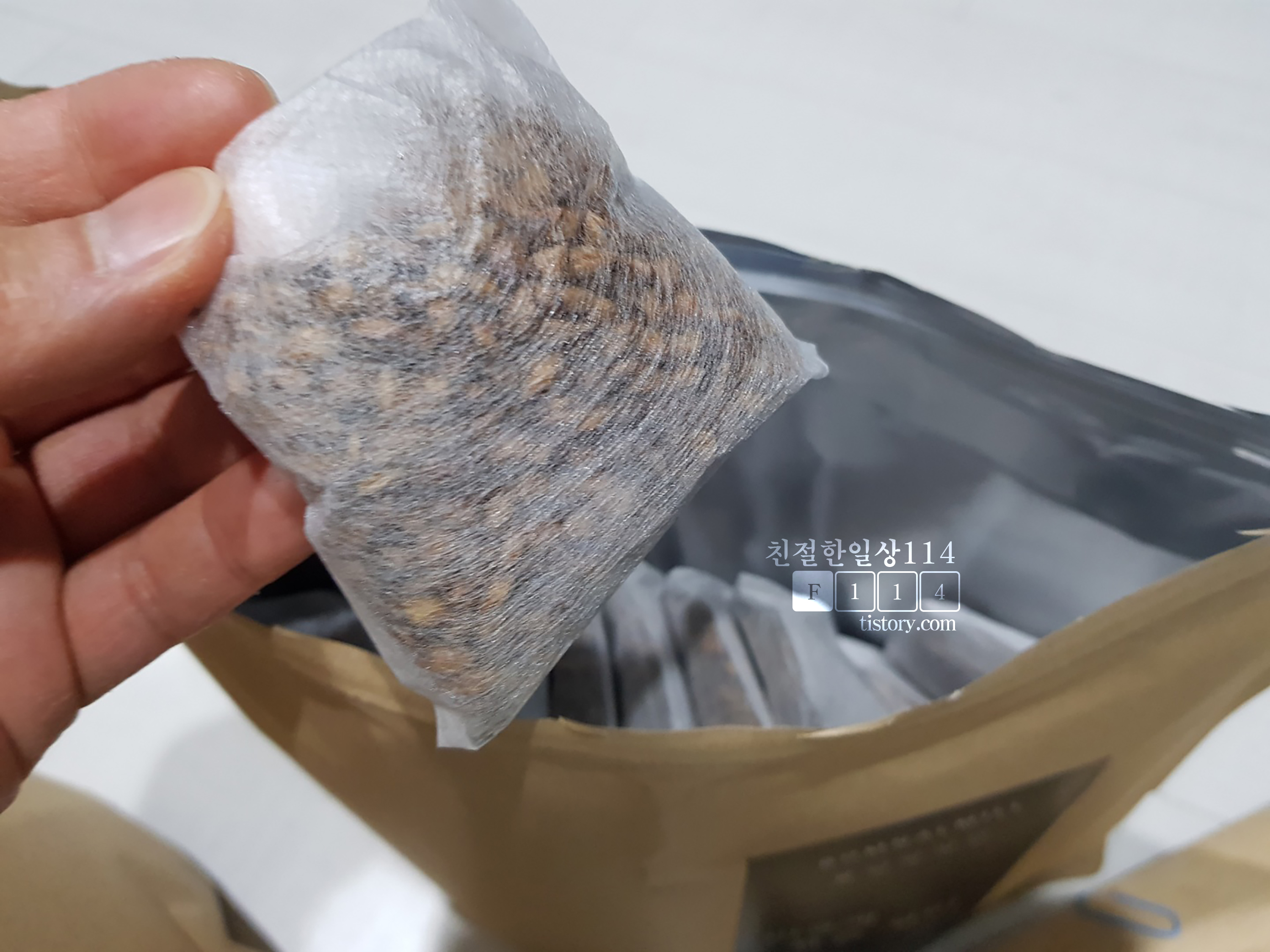 차 거름망은 뜨거운 냄비에 걸쳐서 넣어야하기에 손잡이까지 스테레인스로 되어있는 이케아 제품을 사용했었다. 그런데 끓이고 나서 안에 있는 내용물(보리나 현미)을 뺄때 미끄럽고 잘 안빠져 불편했었다. 그래서 다시 티백으로 되어있어 간편하게 끓일 수 있는 제품을 찾아보았고 '봄날방앗간'에 현미결명자와 볶은보리를 주문해보았다.