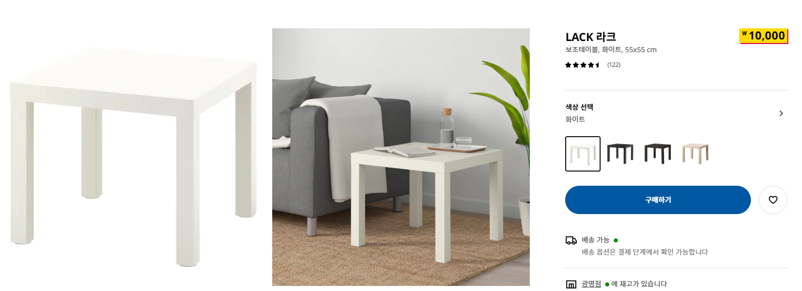 보조테이블 라크의 원래 가격은 12,900원 이다. 현재 이케아 온라인몰과 일부 오프라인 매장에서 블랙과 확이트 색상은 10,000원에 행사 중이다. 필자는 블랙 색상으로 1만원에 구매했다.