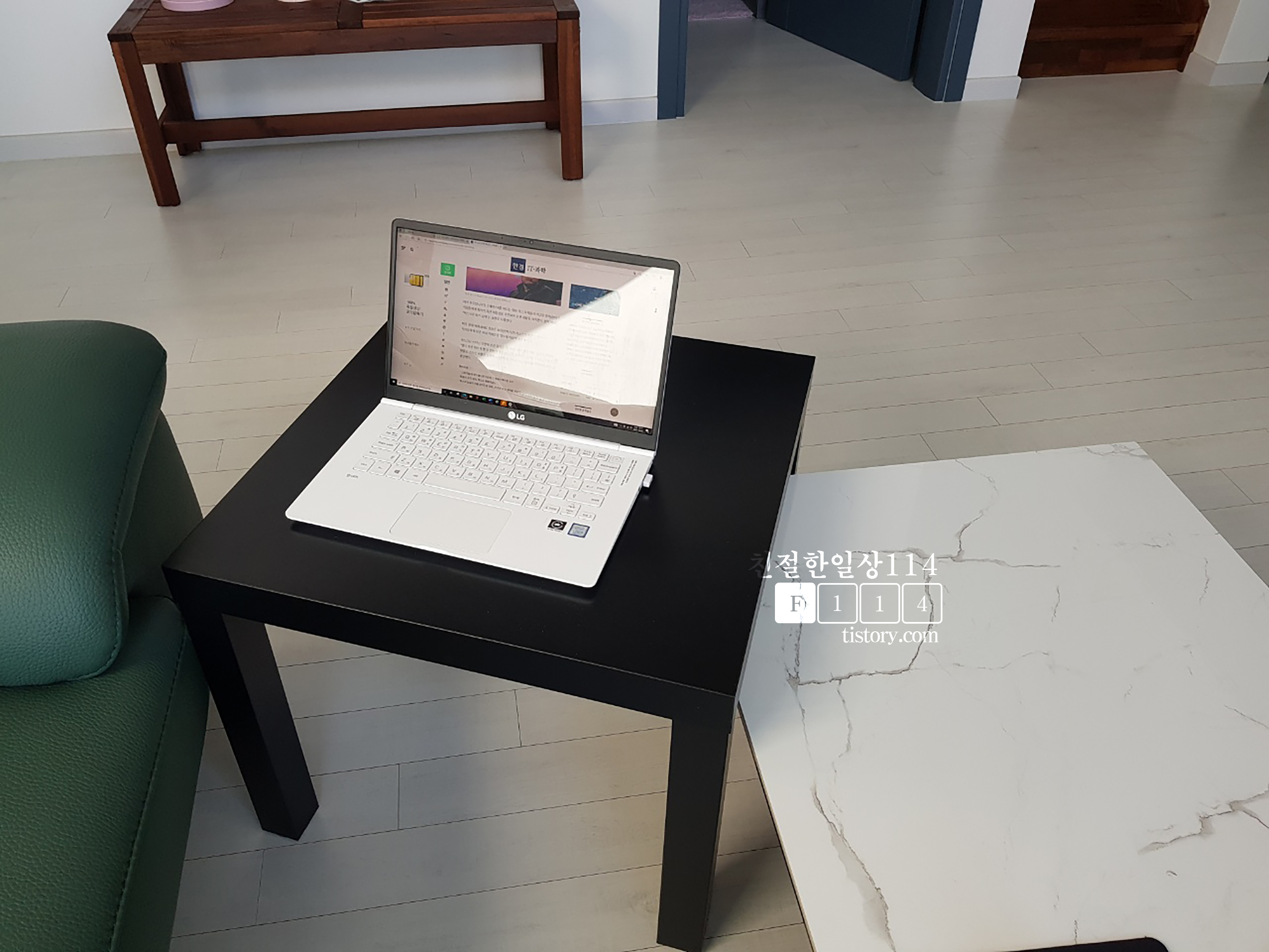 크기가 작아서 어느 공간에나 놓고 쓰기 좋다. 데스크탑과 같이 파워선과 랜선이 연결되어야 하는 경우에는 탁자가 작고 움직이는게 불편할 수고 있겠다. 하지만 필자와 같이 노트북을 사용하는 경우에는 와이파이로 연결해서 사용하기 때문에 그때그때 공간과 장소를 옮겨가며 작업을 한다.