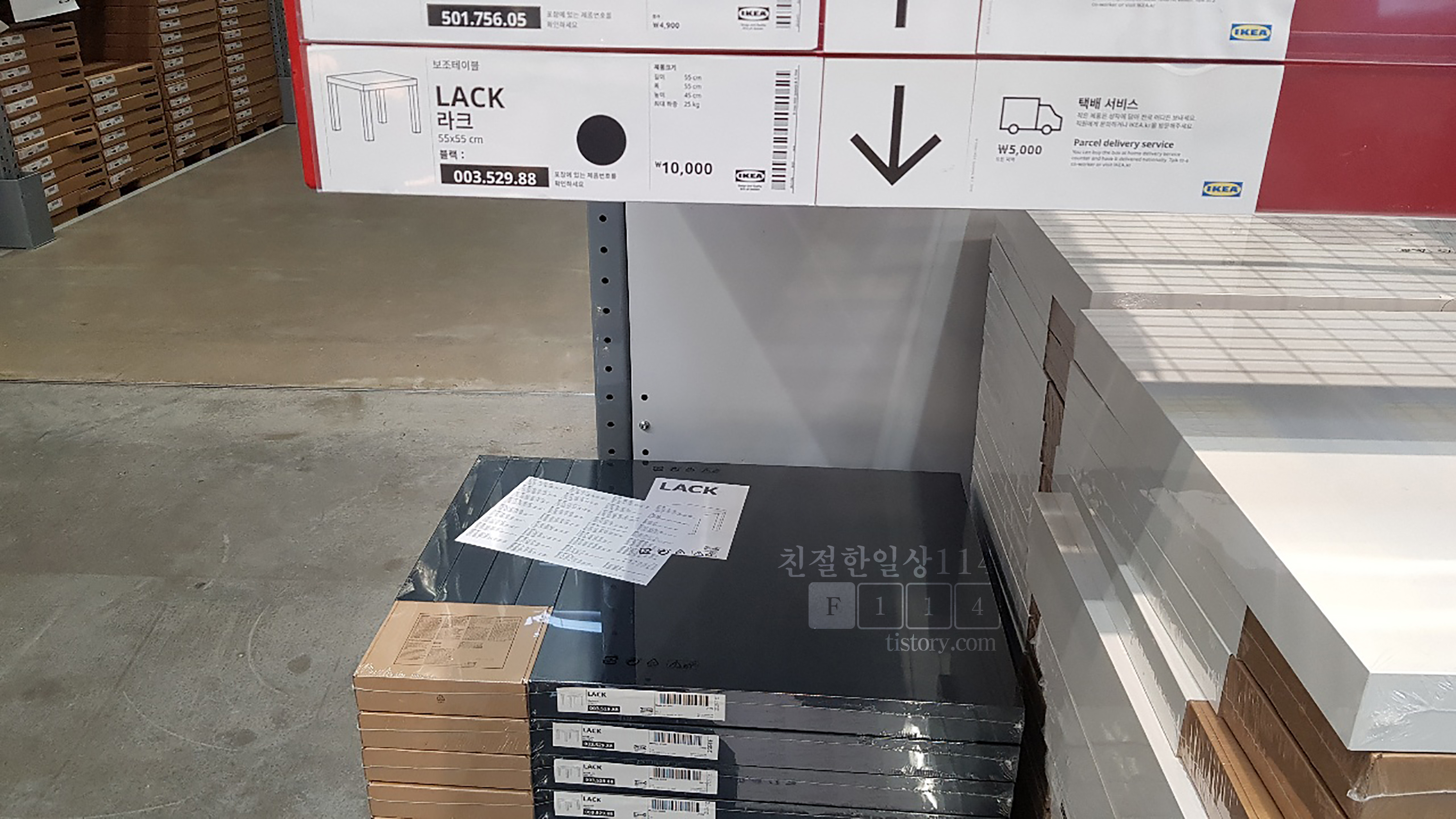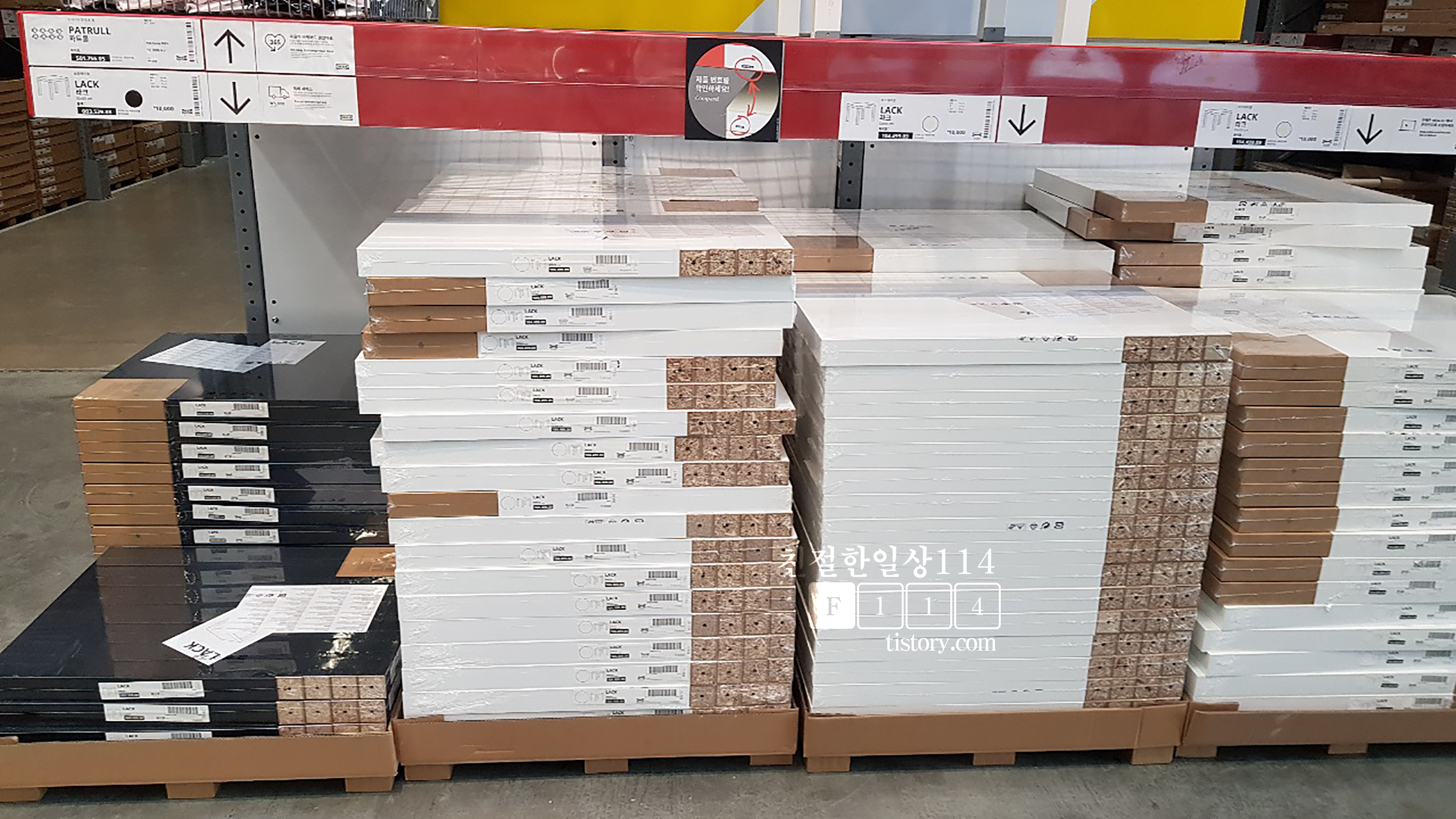 이케아 동부산점에 방문당시 화이트와 블랙제품만 진열되어 있었다. 온라인몰에 들어가보면 블랙브라운 색상과 화이트스테인 참나무무늬의 색상도 있다. 단 두가지 색상은 현재 12,900원 이다.