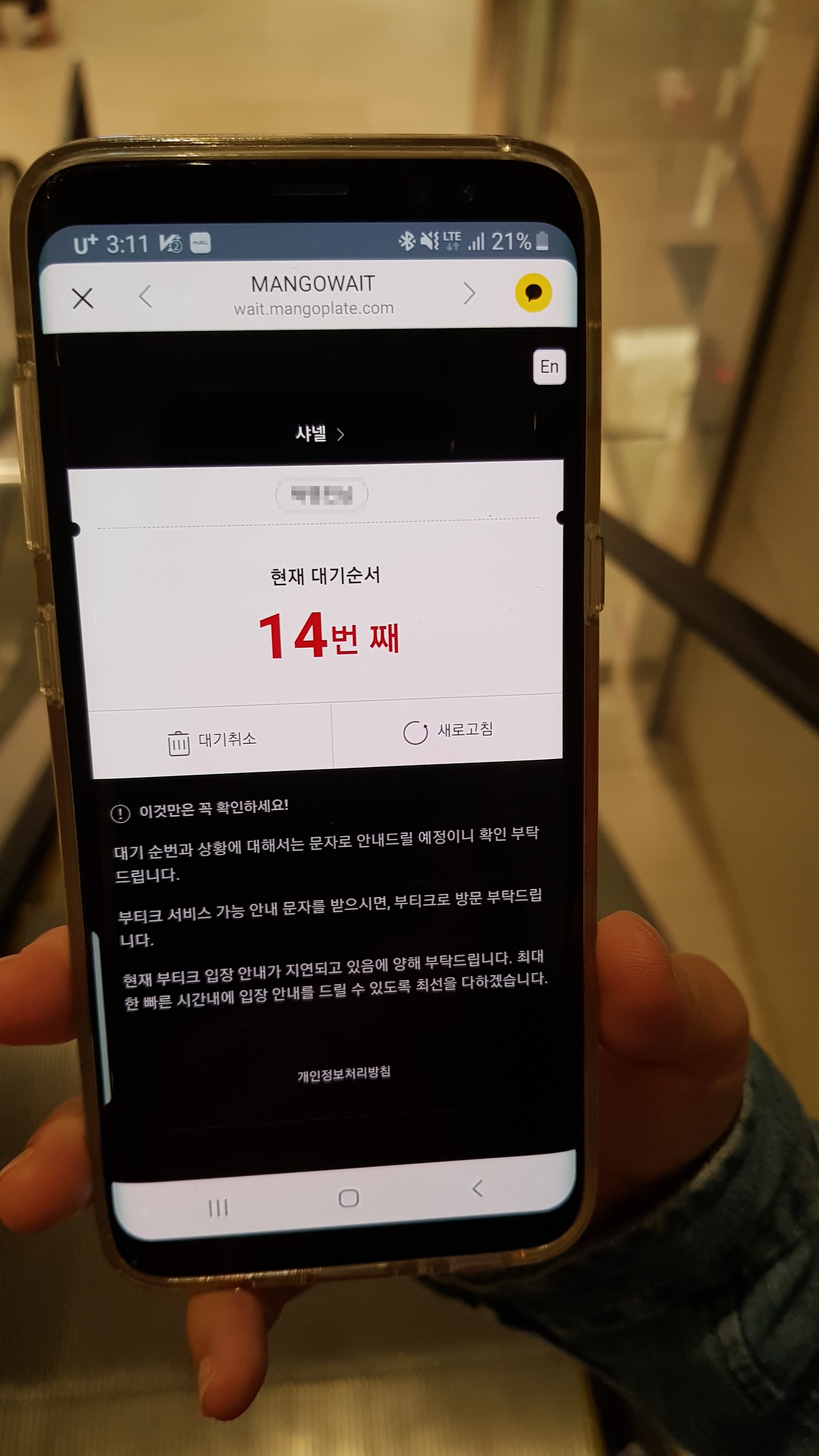 오후 3시 11분 대기순서 14번째. (대기한지 4시간 50분째)