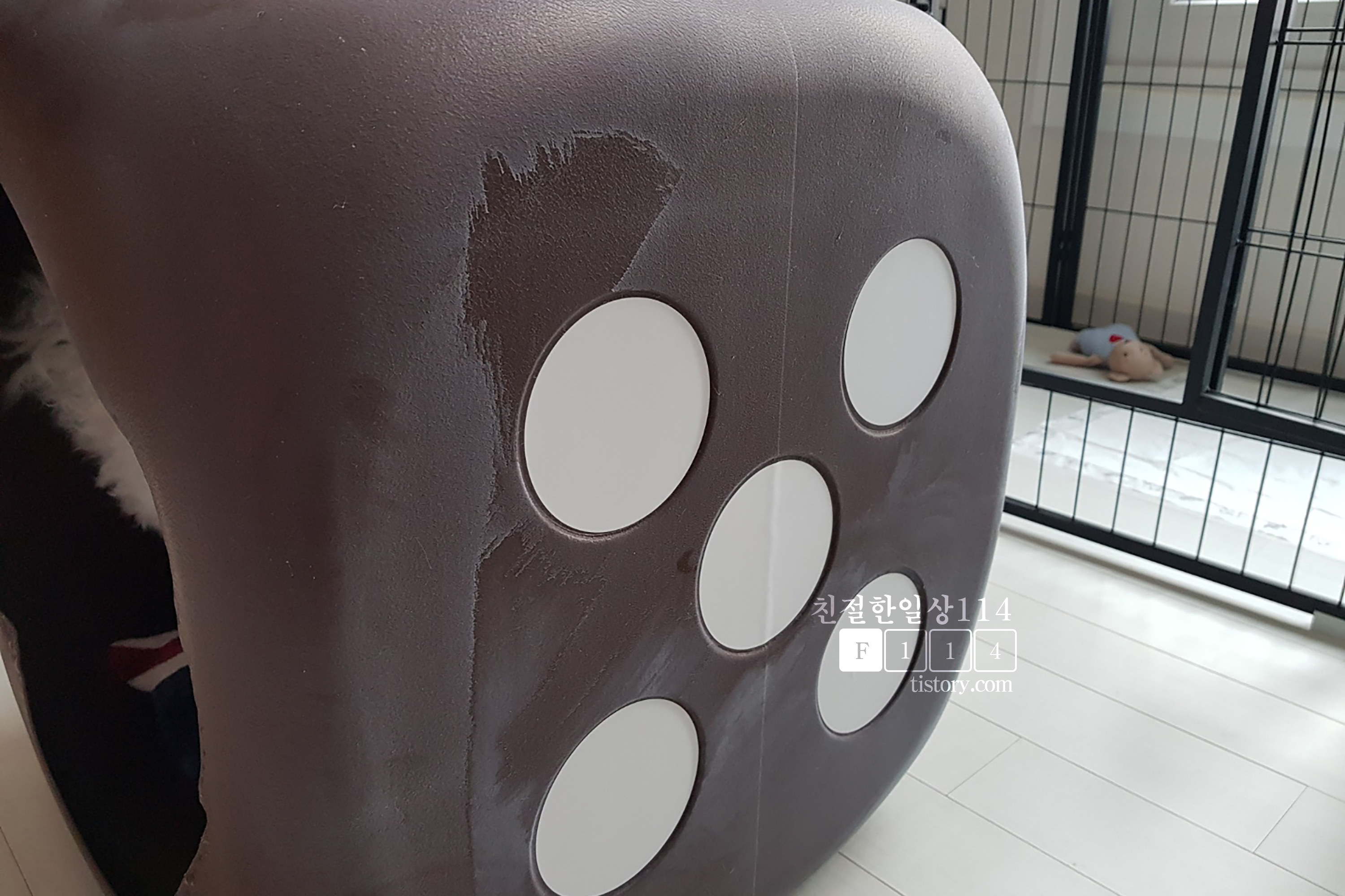 그리고 시간이 지나니 표면이 하얗게 떠올라서 보기가 좋지 않았다. 물수건이나 물티슈로 닦아서 색이 변한건지 모르겠다. 아니면 청소는 하지 말았어야 하는건지도.