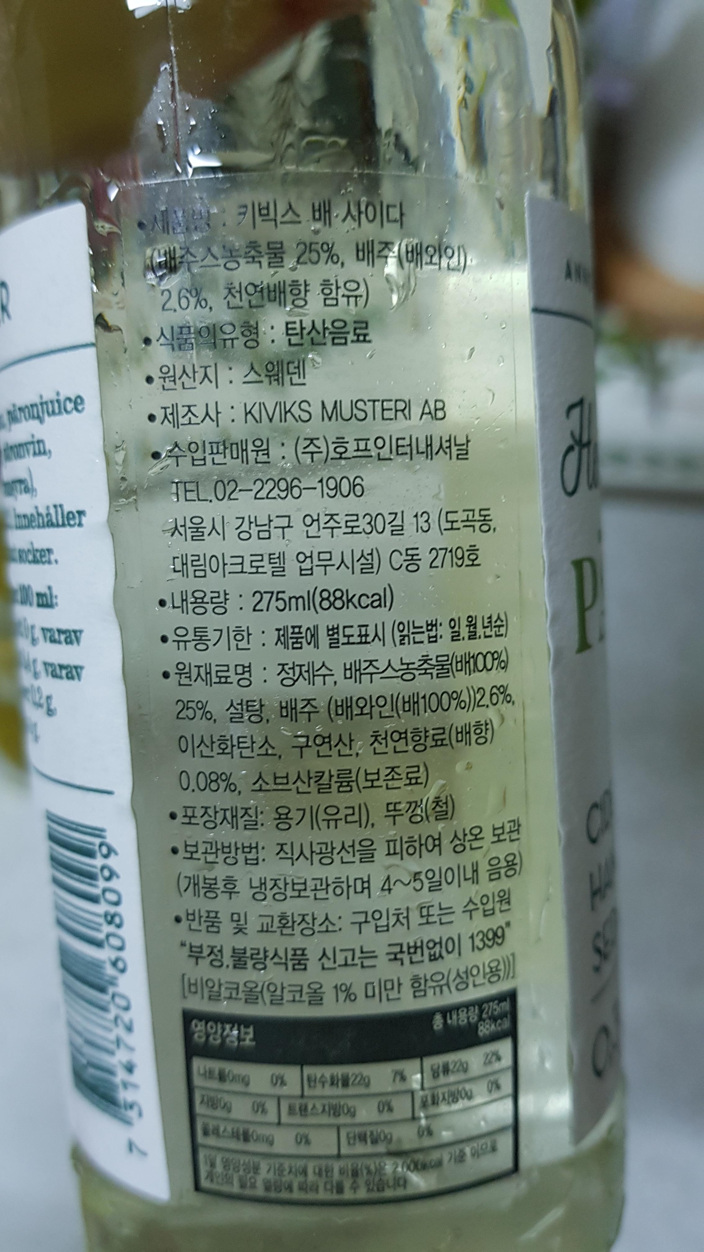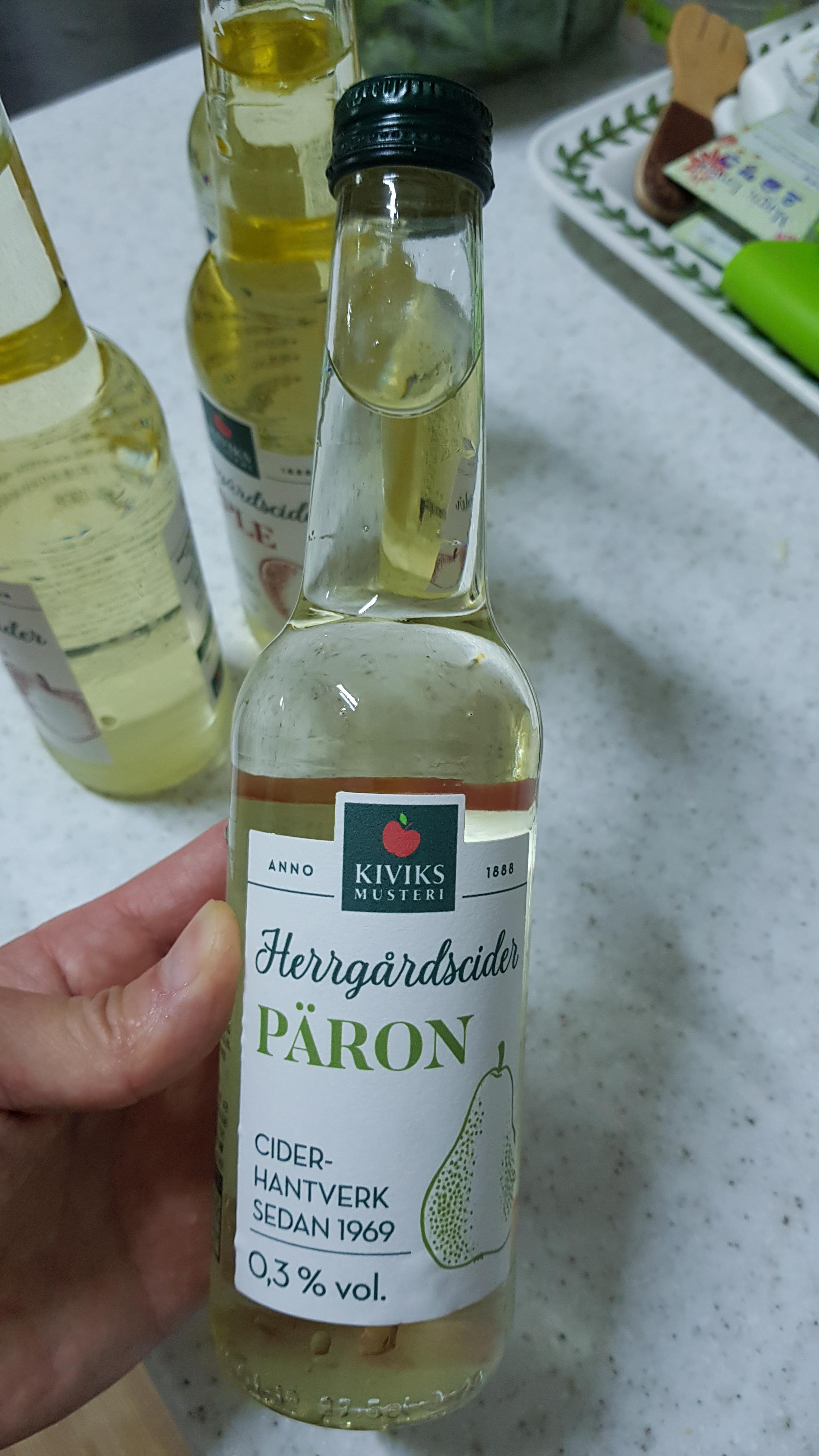원산지를 보니 스웨덴산이다. 주원료는 배주스농축물이고 배주(배와인)가 들어가 있어 미량의 알콜성분이 있는것 같다.