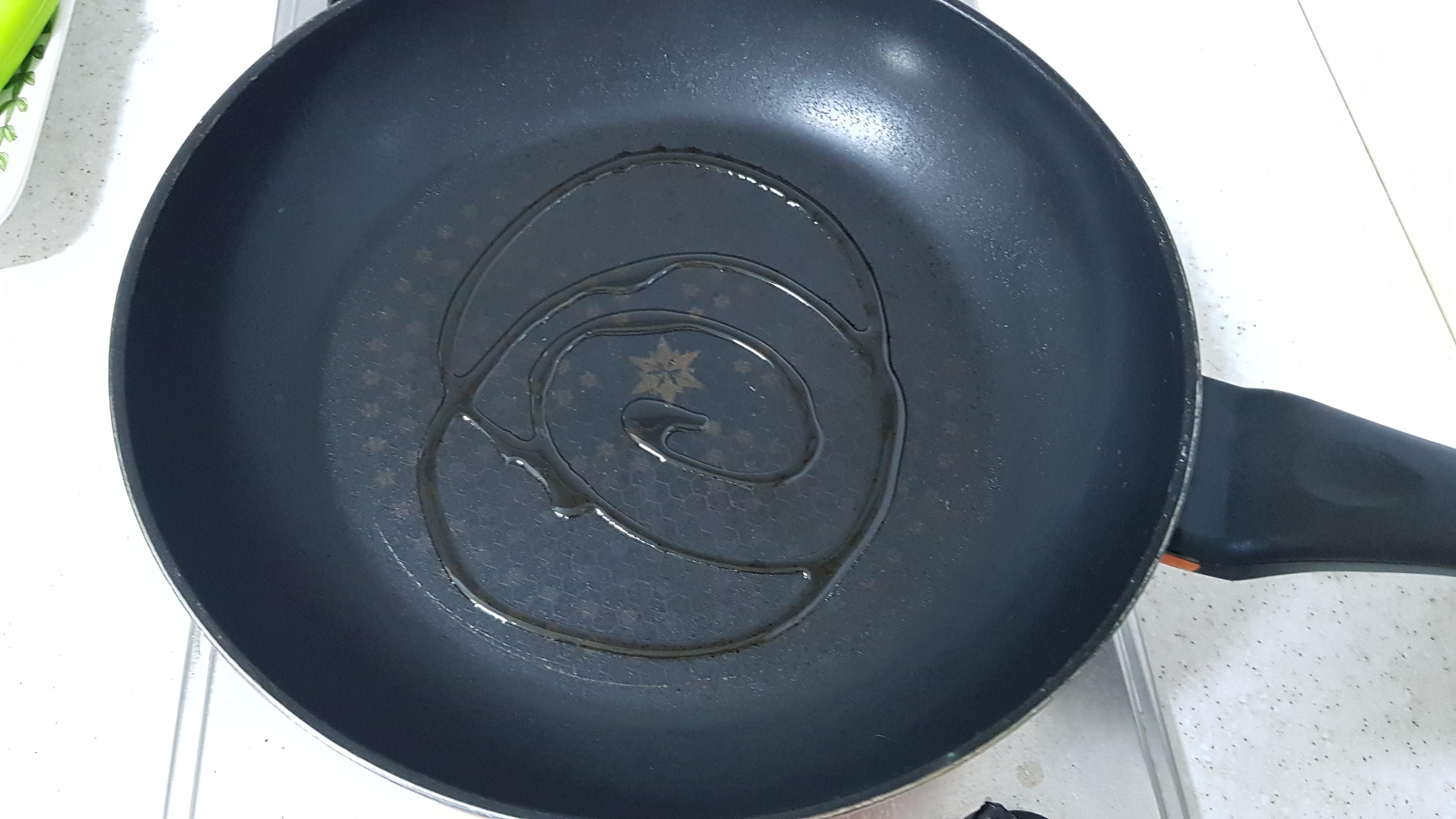 후라이팬에 기름을 두르고 중불로 달궈준다.