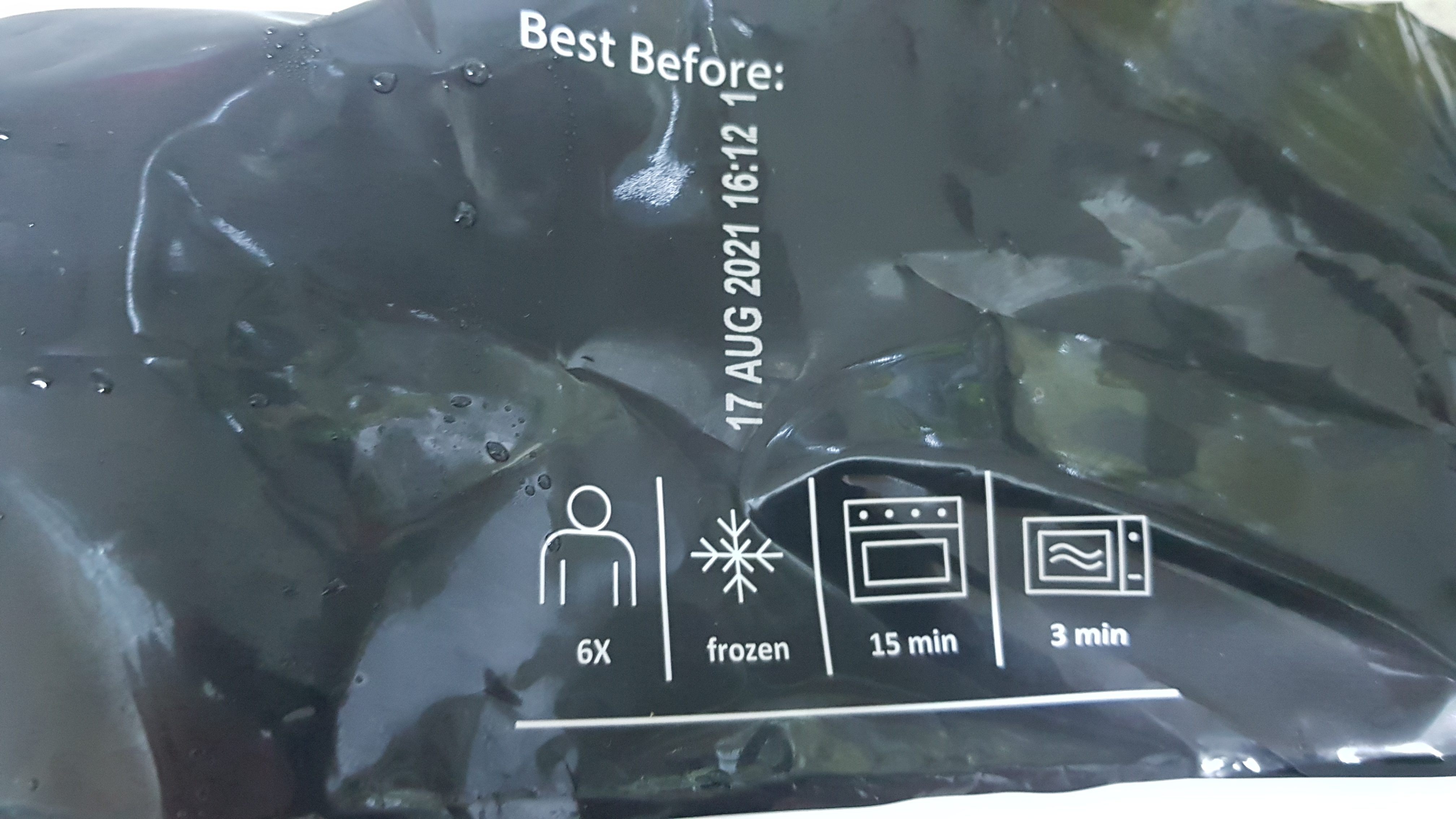 유통기한도 확인. 미트볼 1kg = 6인분 양이니 감안하여 덜어낸다. 오븐에 15분, 전자레인지 3분이라고 그림으로도 표시되어있다.