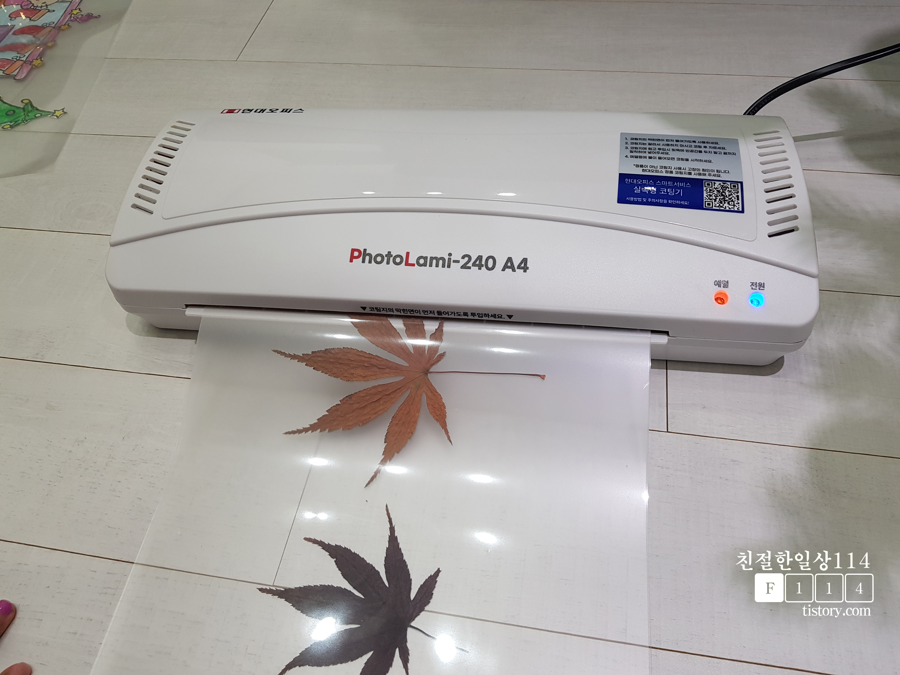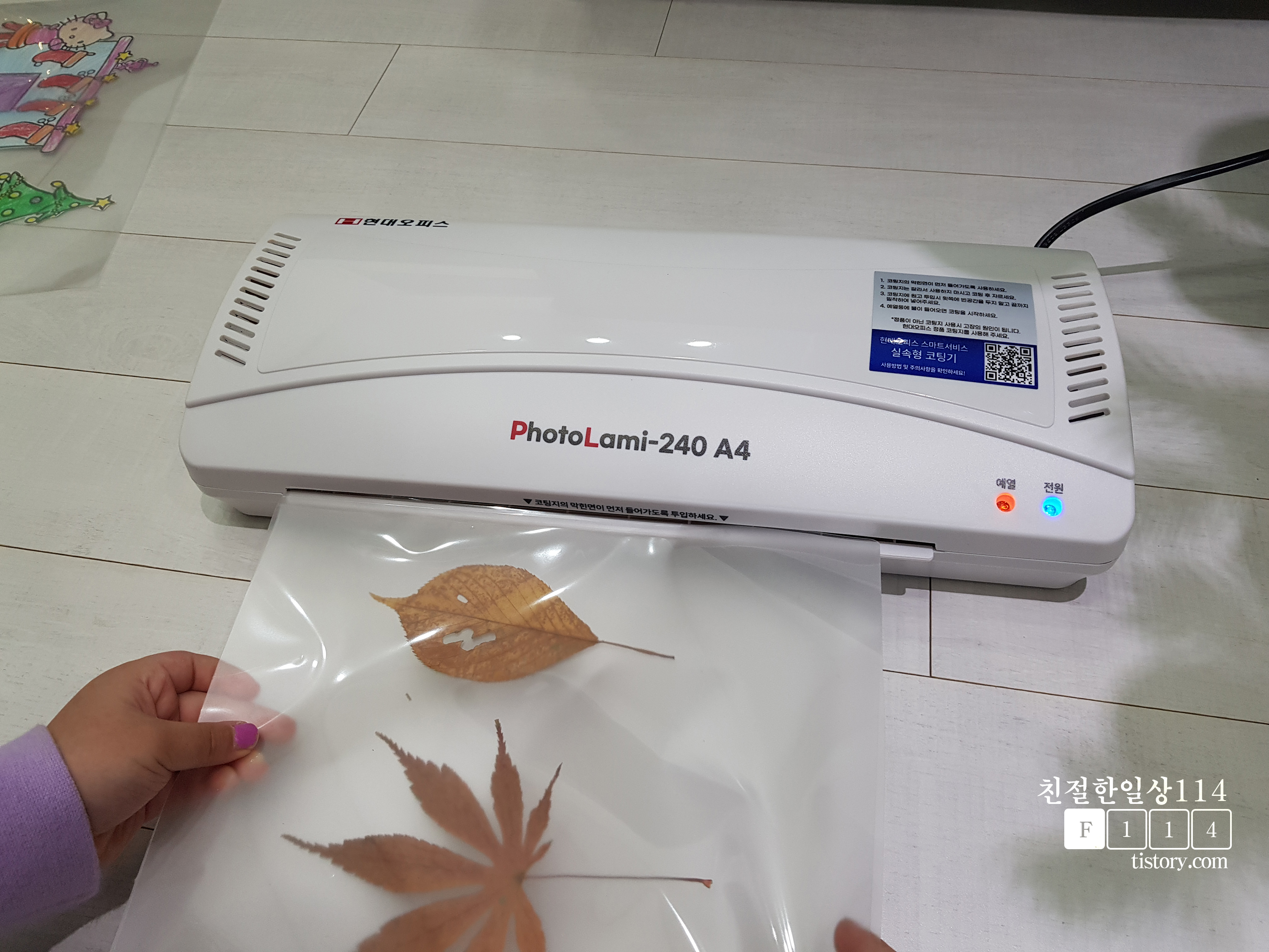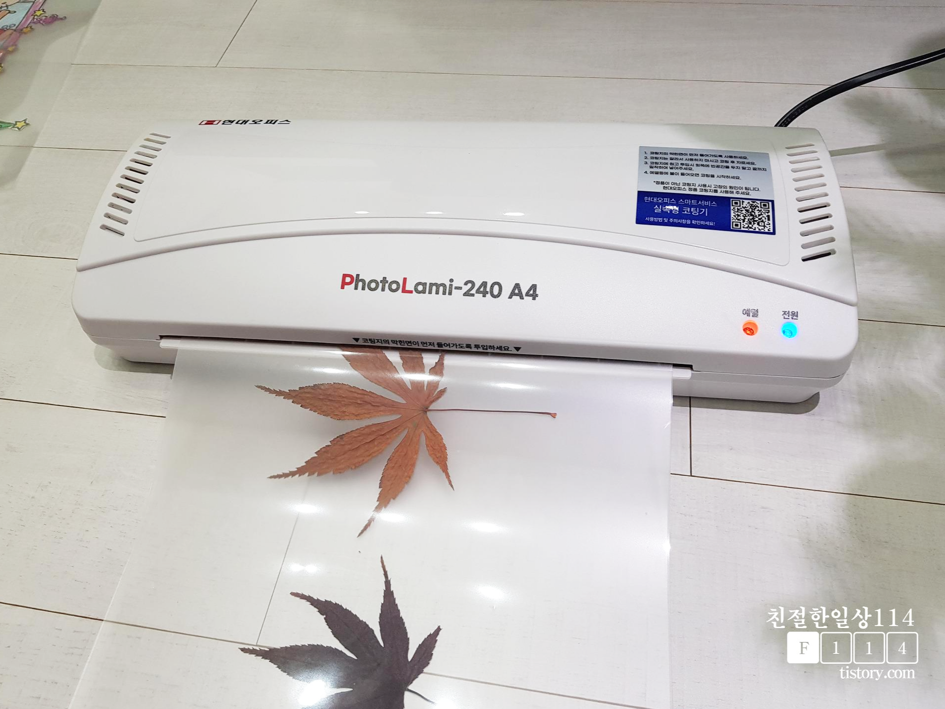 어릴때 꽤나 잘 그려진 그림이나 오래 보관할 문서가 있으면 종이를 문구점에 들고가서 돈 주고 코팅을 했던 기억이 있다. 또 가을에 곱게 물든 낙엽이나 운 좋게 발견한 네입클로버를 책 사이에 보관해 뒀다가 코팅지를 사서 집에서 조심스럽게 기포가 안 생기게 문질러가며 코팅도 해보았다. 얼마전 아이와 같이 산책을 하는데 떨어진 낙엽이 이뻐서 문득 코팅을 해주면 좋겠다는 생각이 들었다. 낙엽 몇 개를 주워와서 책사이에 말려두었다. 그리고 코팅지를 문구점에서 사올까 하다가 인터넷에 검색을 해보니 코팅을 해주는 코팅기가 코팅용지와 같이 살 수 있는 것이 아닌가?! 세상 많이 좋아 졌다 느끼면 여러 종류의 코팅기 중에서 저렴한 가격대인 현대오피스에서 만든 가정용 A4 코팅기 포토라미 PL-240 구매 & 사용 후기를 사진과 함께 남겨본다.