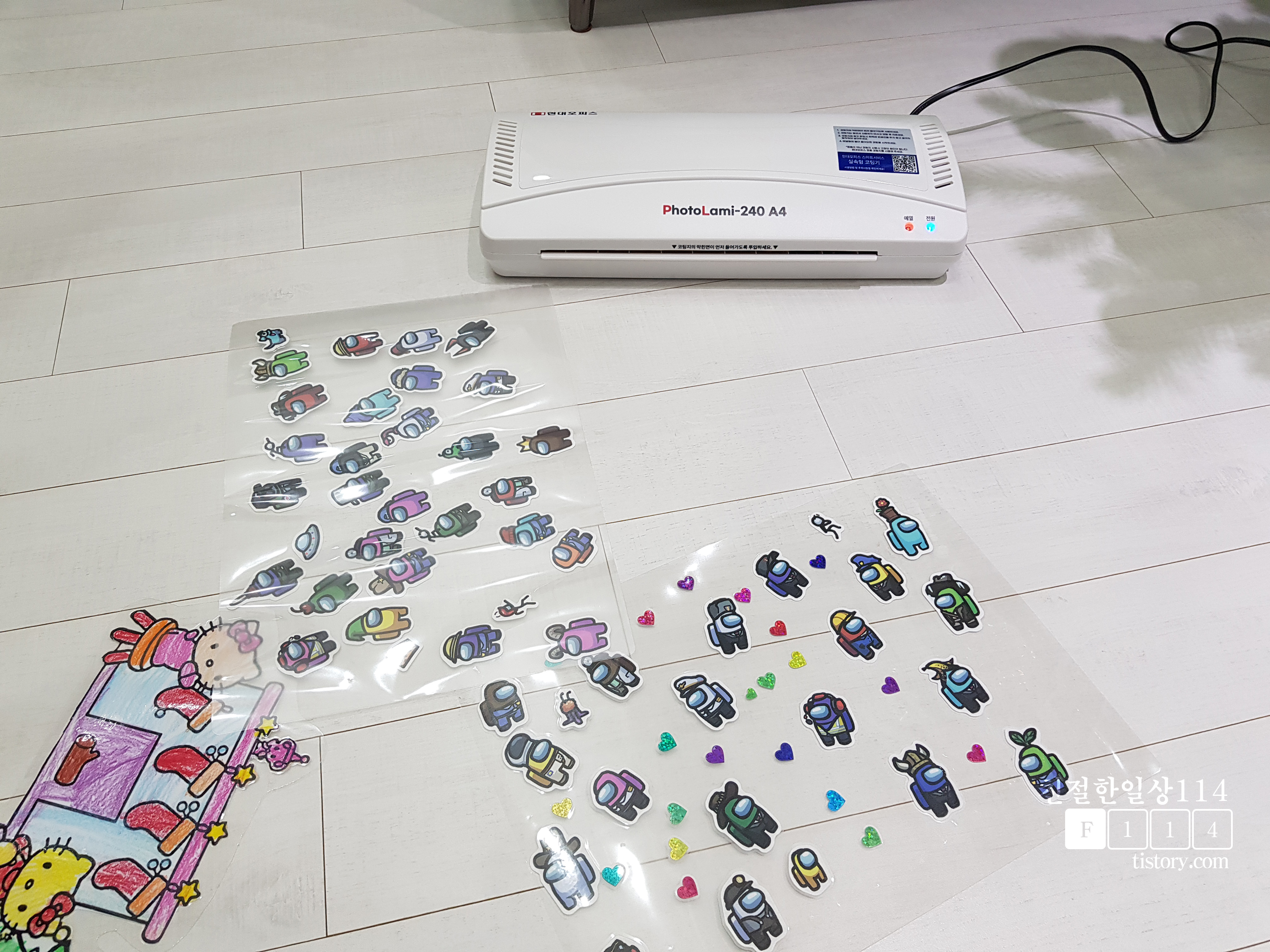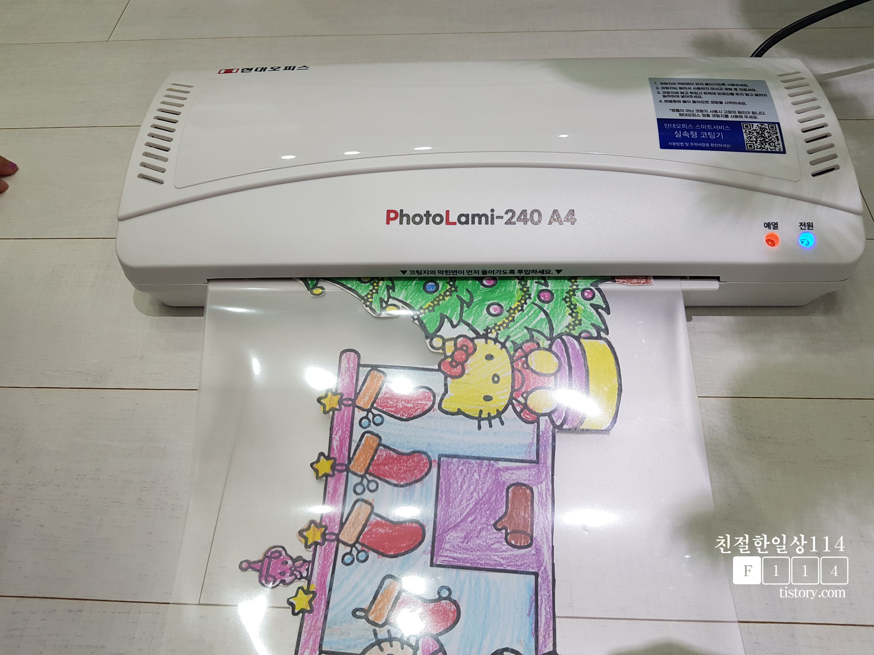 어릴때 처럼 손코팅지를 사다가 코팅을 하는 재미도 있겠지만 코팅지라는 기계가 주는 재미는 또 따로 있는 듯 하다. 만약 아이와 같이 손 코팅으로 했다면 중간에 기포가 생기고 여기저기 삐뚤게 붙여가며 하는 재미?가 더 해졌을 지도 모를 일이지만..
