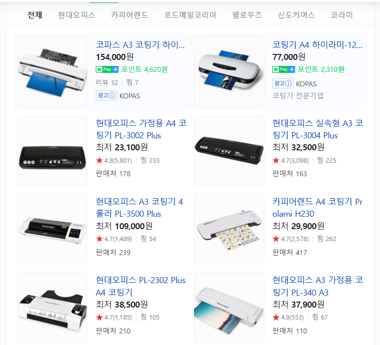 코팅지를 사려고 알아보다가 발견한 가정용 코팅기이다. 코팅하는 기계라고하면 비싸거나 크기가 크지 않을까 싶었는데 생각보다 저렴한 제품도 많았다.