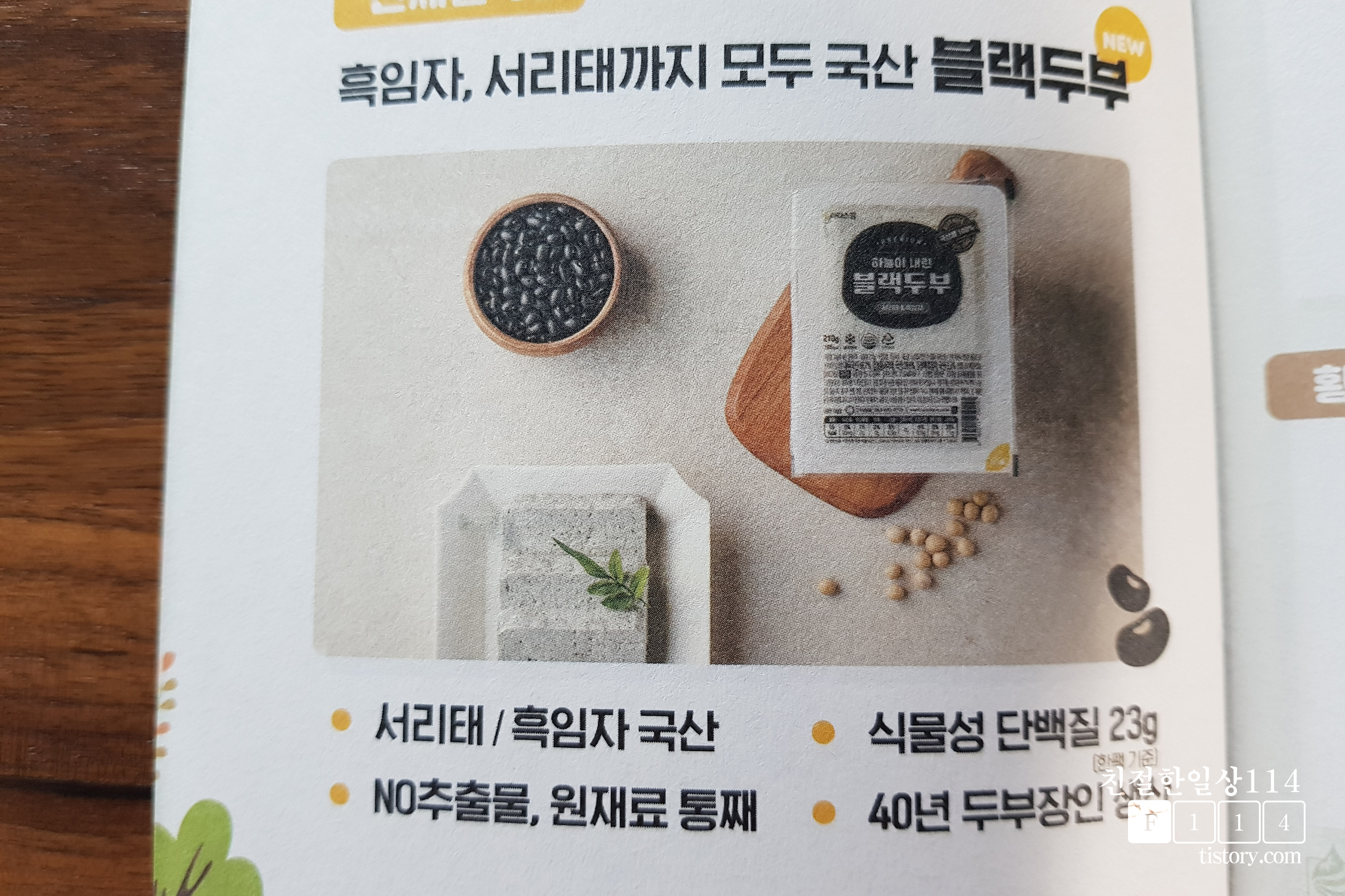 이번에 주문한 두부제품 외에도 이색적인 제품이 많다. 흑임자와 서리태가 들어간 블랙두부와 김두부각 제품 그리고 황토가마에 구운 두부시리즈도 있다.