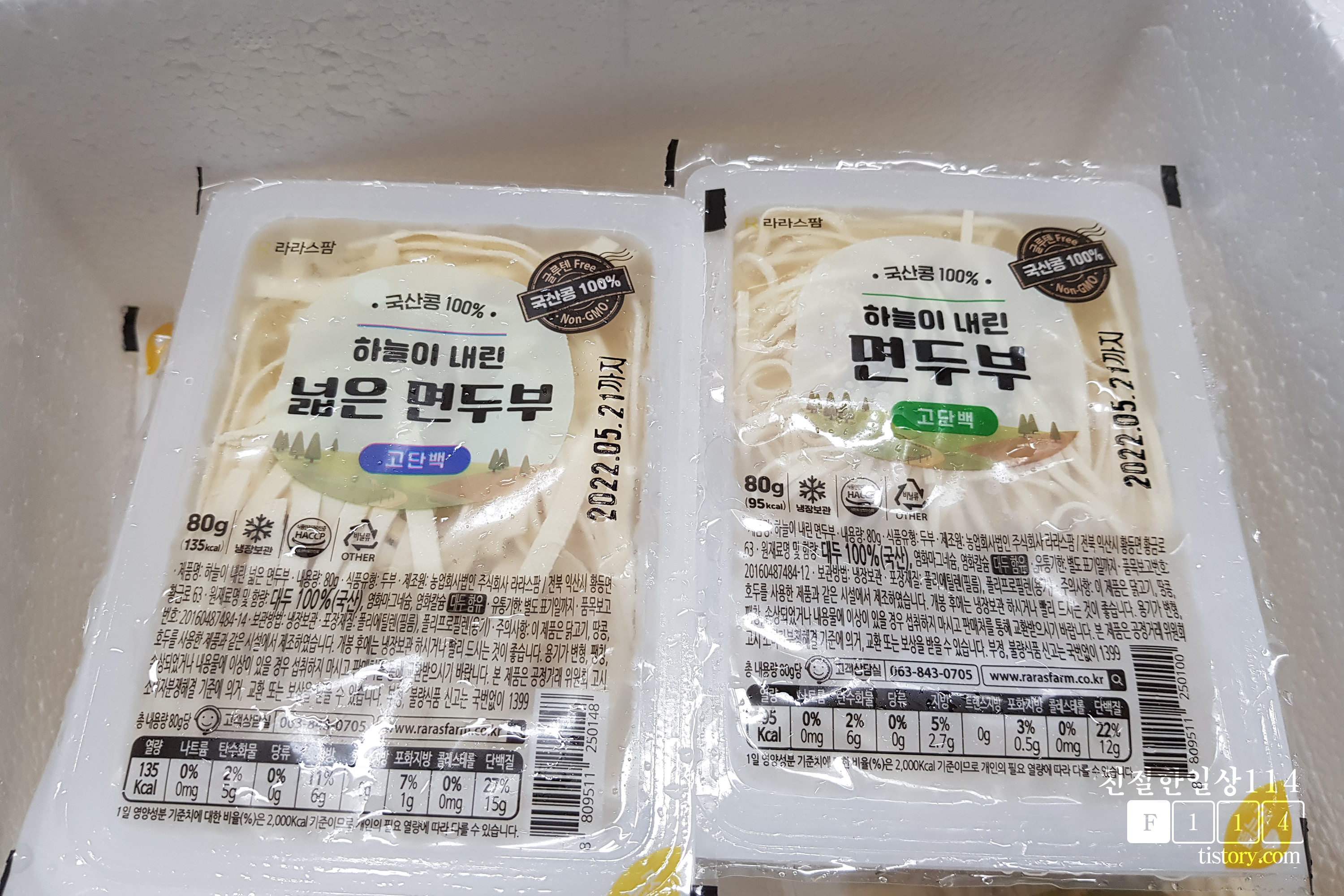 이번에 주문한 두부제품은 쌈두부, 면두부, 넓은 면두부 이렇게 3종류 이다.