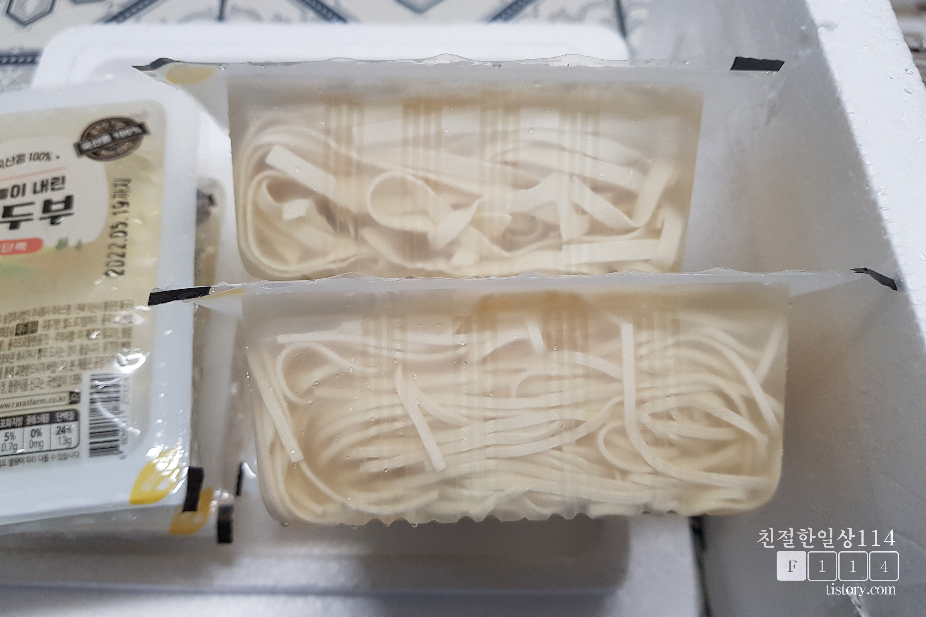 주문을 하면 아침에 발송된 제품을 당일에 받아 볼 수 있다. 스티로폼박스 안에 있는 두부제품이 흔들리지 않도록 아이스팩을 상자의 남는 공간에 채워 잘 포장이 되어 있었다.