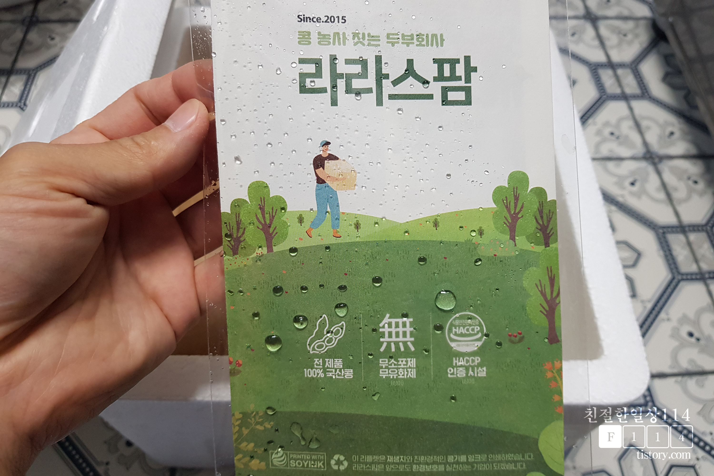 라라스팜에 만드는 이색적인 두부 제품들이 눈길을 끌지만 이보다 앞서 마음에 들었던 점으로는 국산콩 100% 사용이라는 점이다. 회사에서 직접 재배한 콩과 지역에서 재배한 콩으로만 두부를 만들기에 100% 국산콩이며 유전자변형 걱정없이 먹을 수 있다는 점에서 안심이 되고 좋았다.
