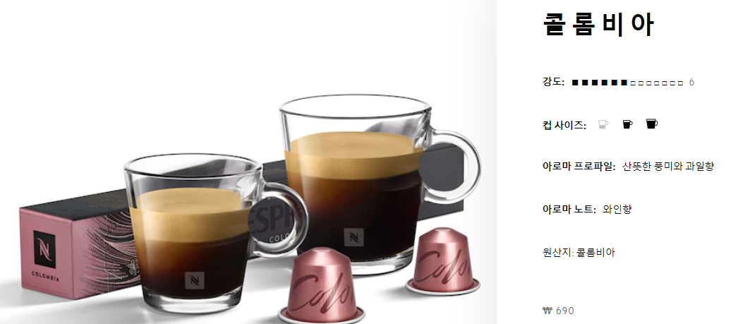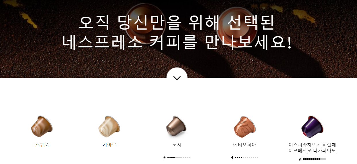 네스프레소 홈페이지에 들리면 내게 맞는 커피 찾기라는 서비스가 있다. 여기 결과에서 나온 5종류의 캡슐에서도 비슷한 맛을 찾지는 못 했다.