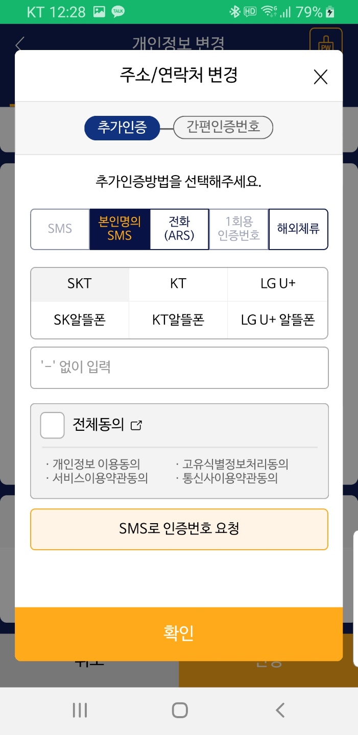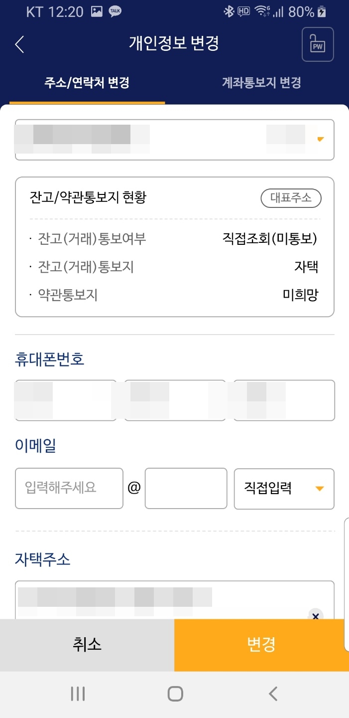 3. 개인정보 변경 -> 주소/연락처 변경 화면