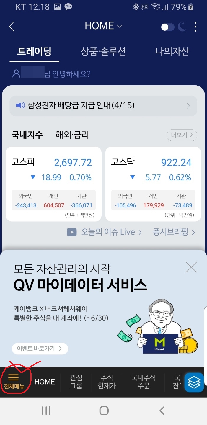 결론은 해당 주식계좌 주소지 변경만 가능하면 연결된 모든 계좌의 변경은 별도의 인증이 필요하다는 것이다. 이제부터 NH투자증권 모바일 앱 QV에서 주소지 변경하는 방법을 남겨본다.