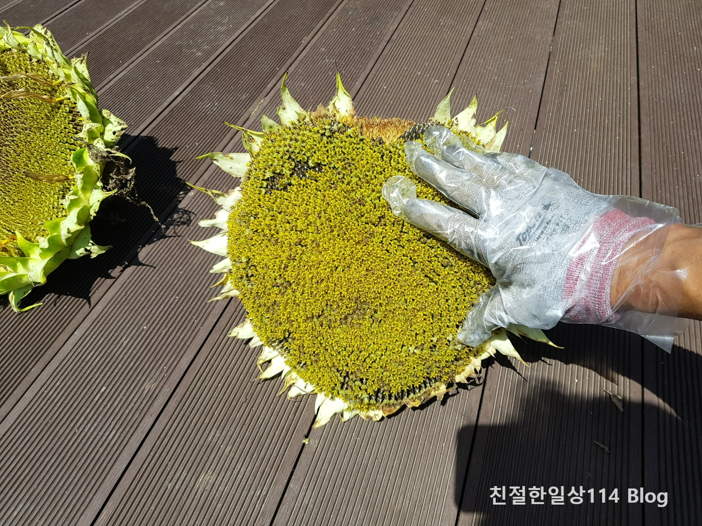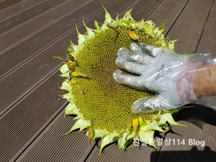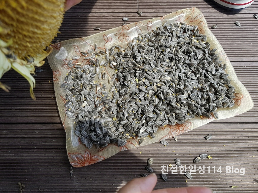 처음 키워보고, 처음 수확해보는 해바라기 씨를 사진으로 남겨보았다.