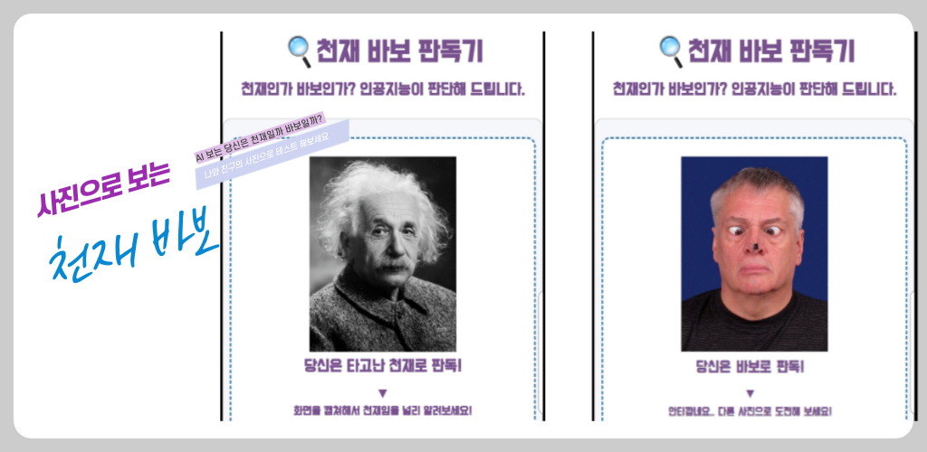 티쳐블머신에서 내가 원하는 조건으로 AI를 학습시키고 학습된 결과물(학습모델)이 웹 화면에서 조건에 반응하여 나타나도록 하면 된다.