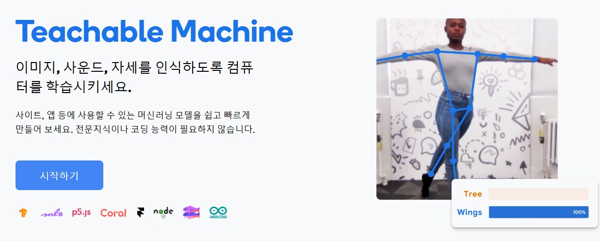 또다시 어떻게 어떤 공부를 해야 하는지 감을 잡기 위해 검색하며 시간을 보냈고 조코딩 채널에서 구글 Teachable Machine 이라는 인공 신경망 알고리즘 사이트를 알게 되었다.