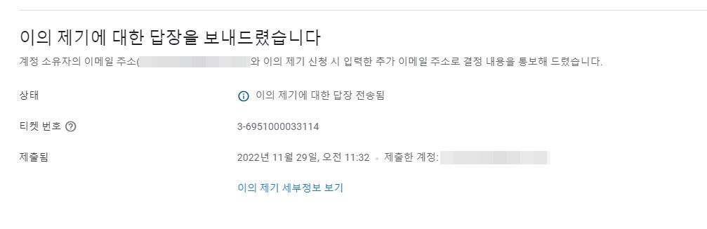 수정하고 제출해 보았지만 계속해서 거부되어 이의를 제기해 보았다.
