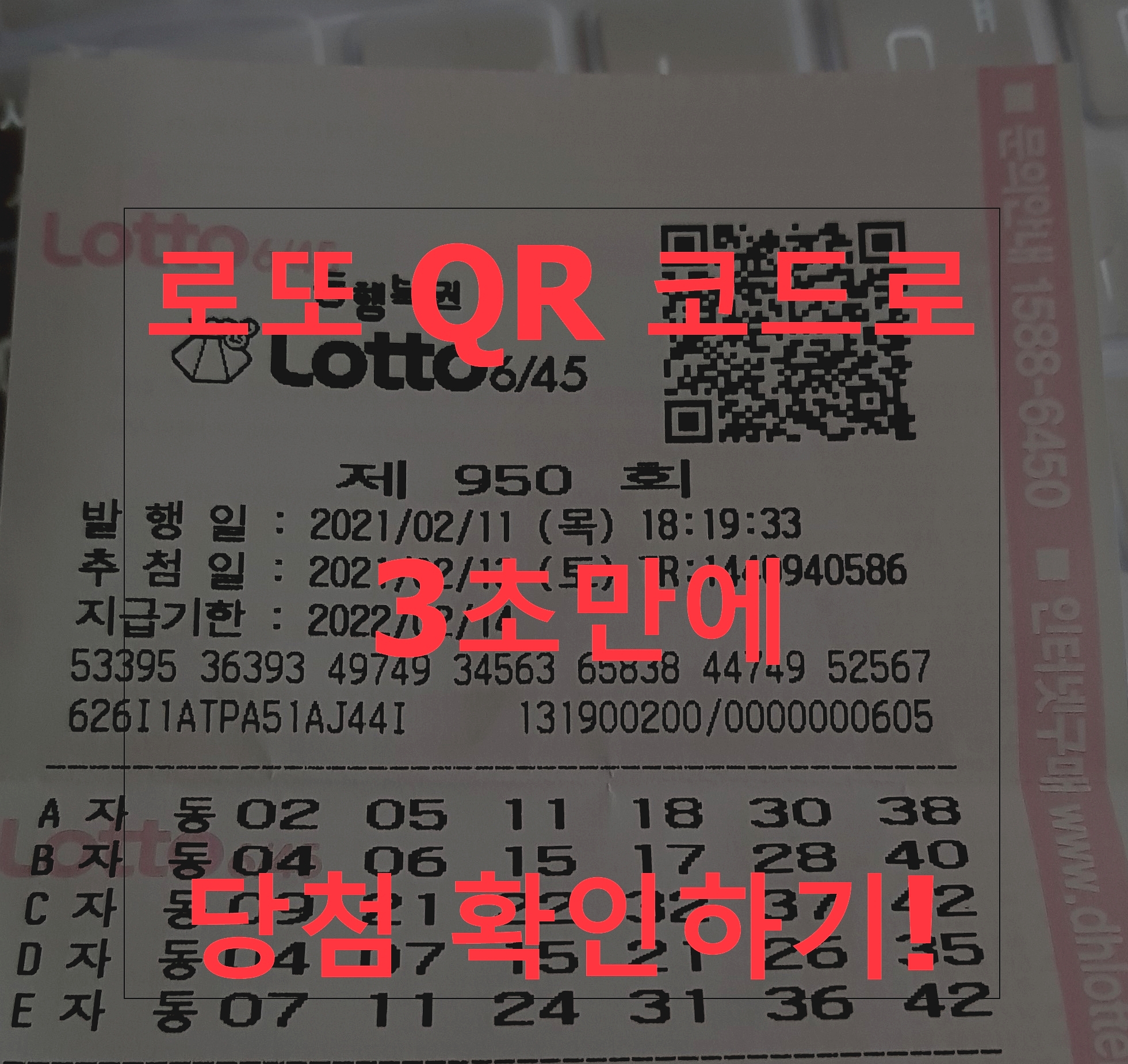 45개의 숫자중 6개를 맞추면 1등이고 당첨금이 적게는 10억부터 20억, 30억 까지도 받을 수가 있다. 1등 당첨금 평균 수령액이 21억이라는 기사를 얼마전에 본 기억이 난다. 누구나 한번쯤 일획천금의 꿈을 꿔 보았을 것이고 필자 또한 생각날때 가끔 복권 판매점에 들려서 로또를 사며 잠깐씩 기분 좋은 상상을 해보곤 한다. 필자는 로또를 맞춰볼때 번호를 일일히 맞춰보는 방식으로 하지만 빠르고 간단하게 QR 코드로 당첨여부를 확인하는 방법도 있어 소개하고자 한다.