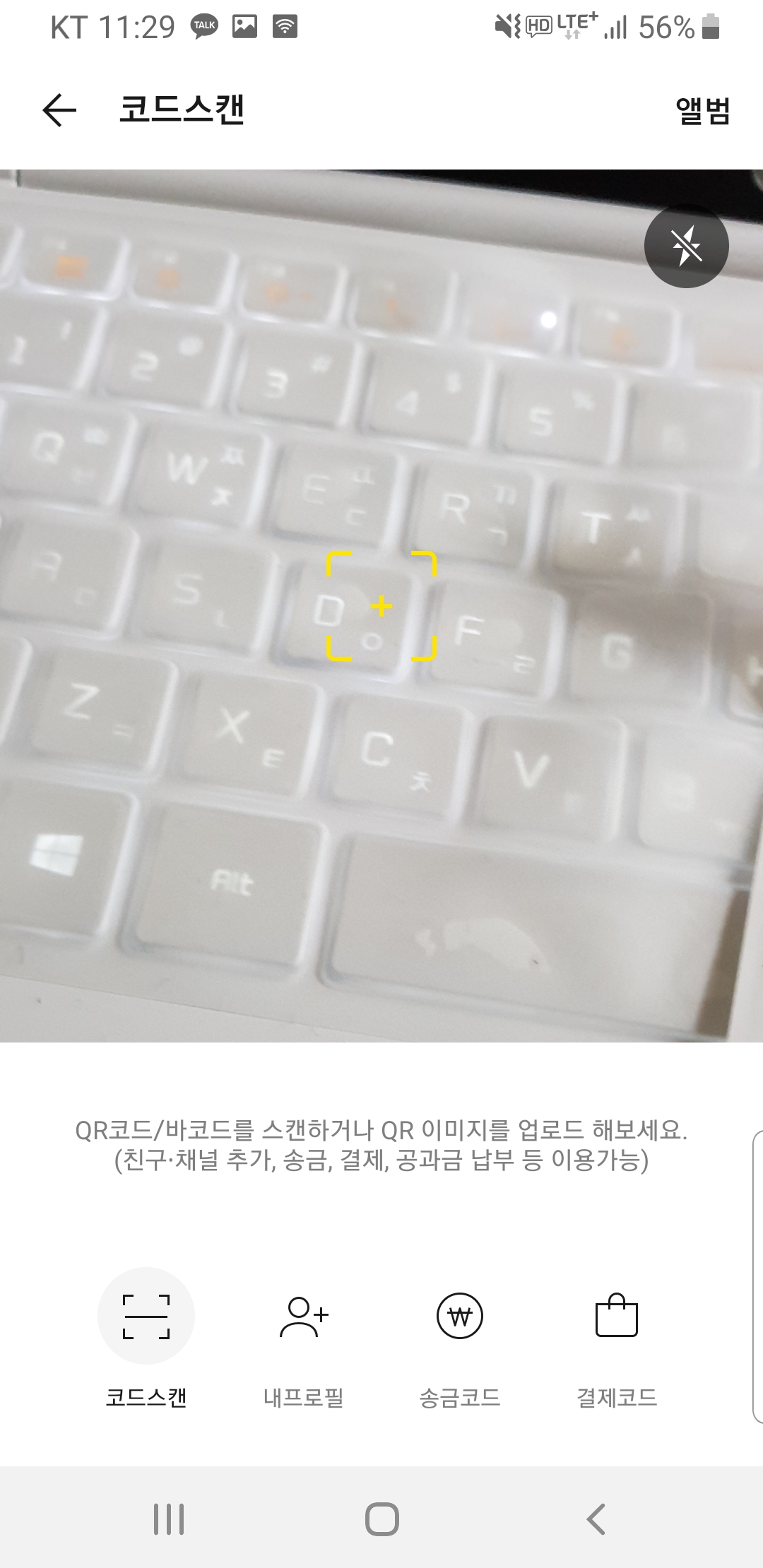 다음 상단 돋보기(검색) 오른쪽에 사각형이 코드스캔인데 여기로 들어간다.