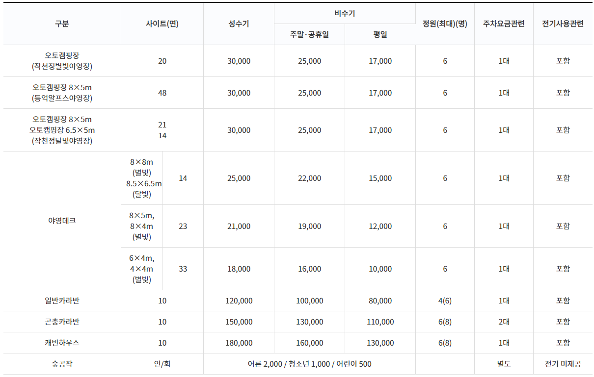 ㅣ야영장 이용료(가격)