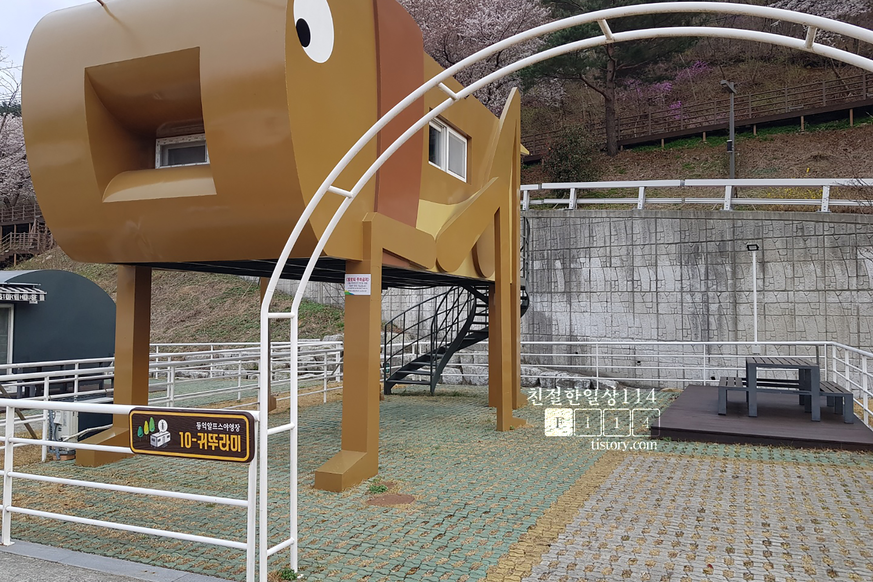 봄이 되니 도로며 산이며 곳곳에 벚꽃이 피어 어디를 가든 꽃놀이를 다니는 기분이 든다. 울산에서는 언양 작천정 수남벚꽃길이 유명하다. 올해는 이 수남벚꽃길에 두차례 들려 꽃놀이를 즐겼다. 이곳 작천정에서 등억알프스도로를 따라 조금만 더 올라가게 되면 이색적인 카페가 많다. 한 날은 카페 유와백가에서 커피를 마시고 카페 근처를 산책하는데 야영장으로 통하는 길이 있어서 가 본다.
