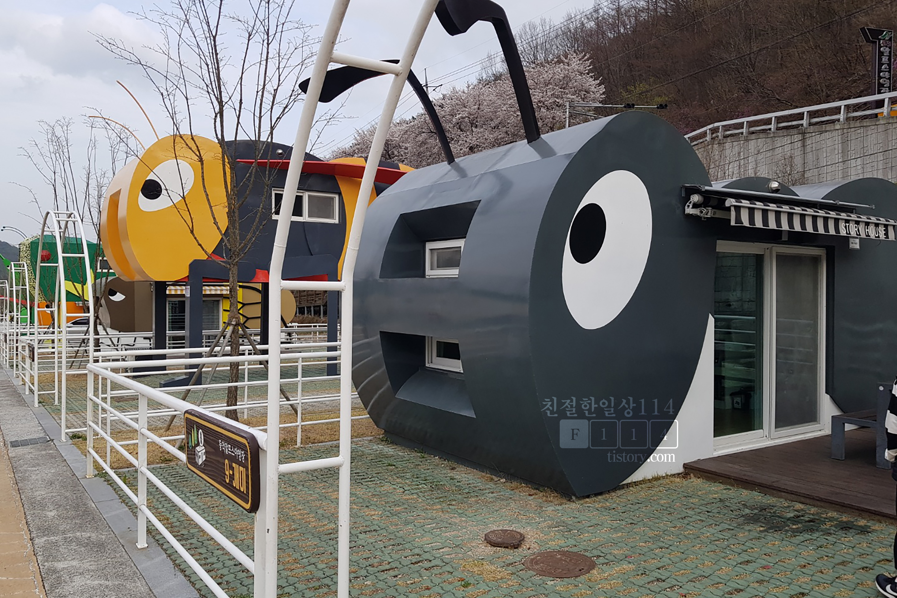 일반 카라반도 곤충 카라반과 같은 구조이다. 주차장이 있고 카라반 입구쪽에 야외테이블이 있다.