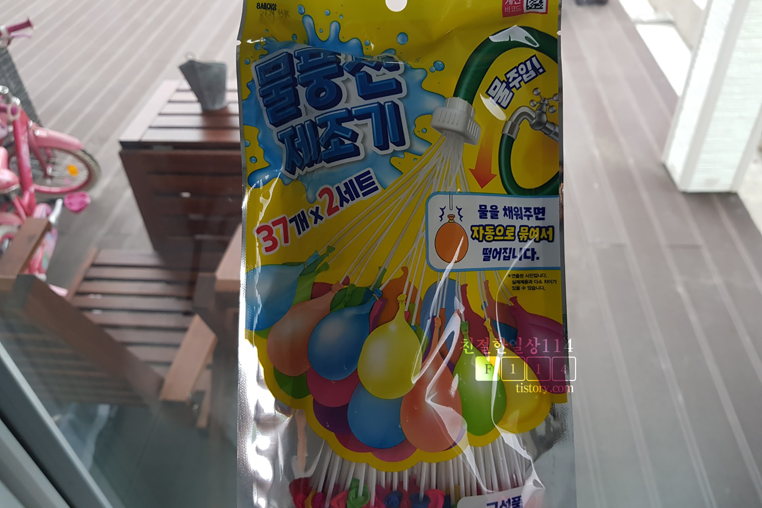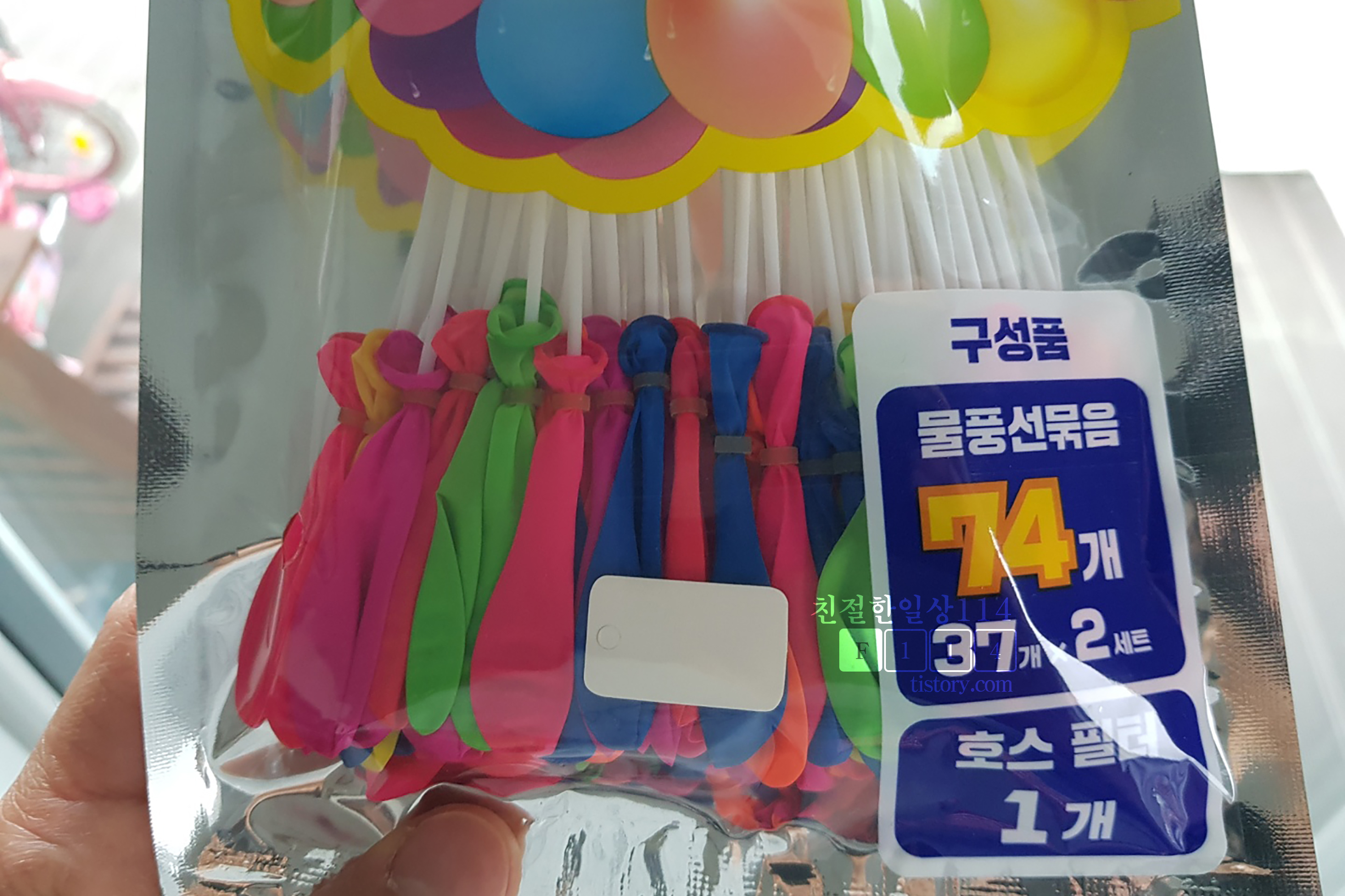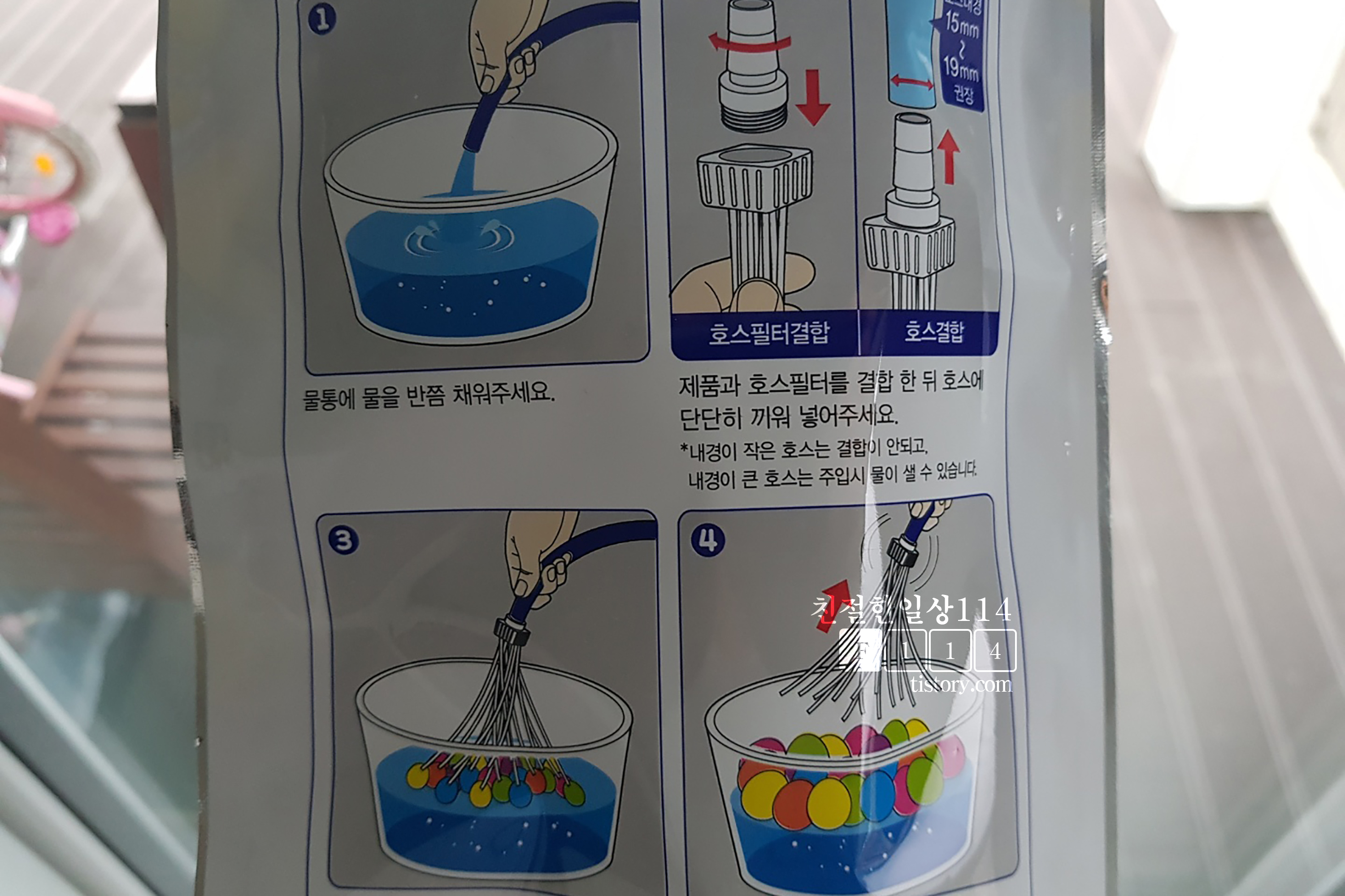 안그래도 물풍선에 물을 채워서 묶는게 귀찮기도하고 어려웠는데 그림의 설명대로 제대로만 된다면 상당히 편할 것 같다. 2개를 사서 집으로 돌아왔다. (가격: 1,000원/물풍선 72개)