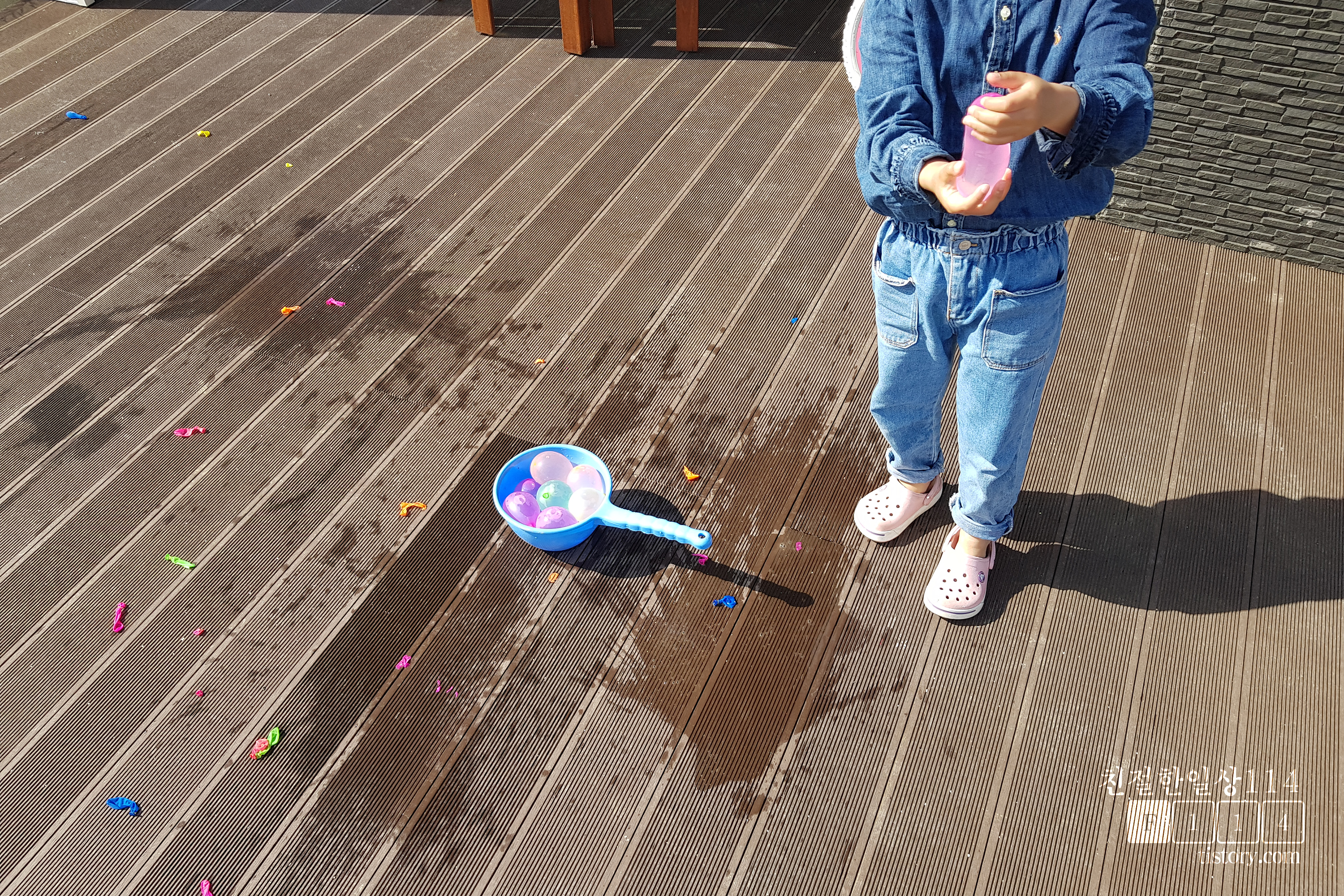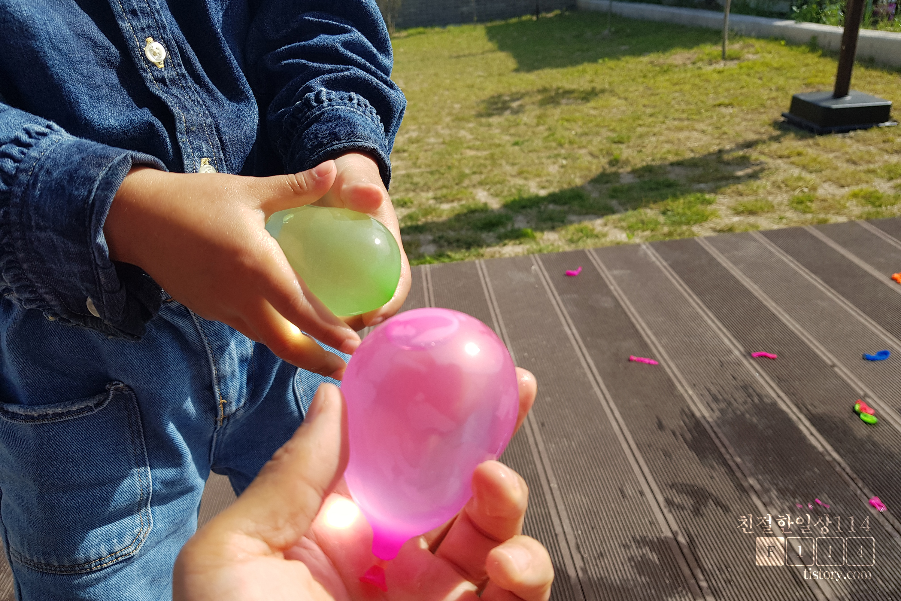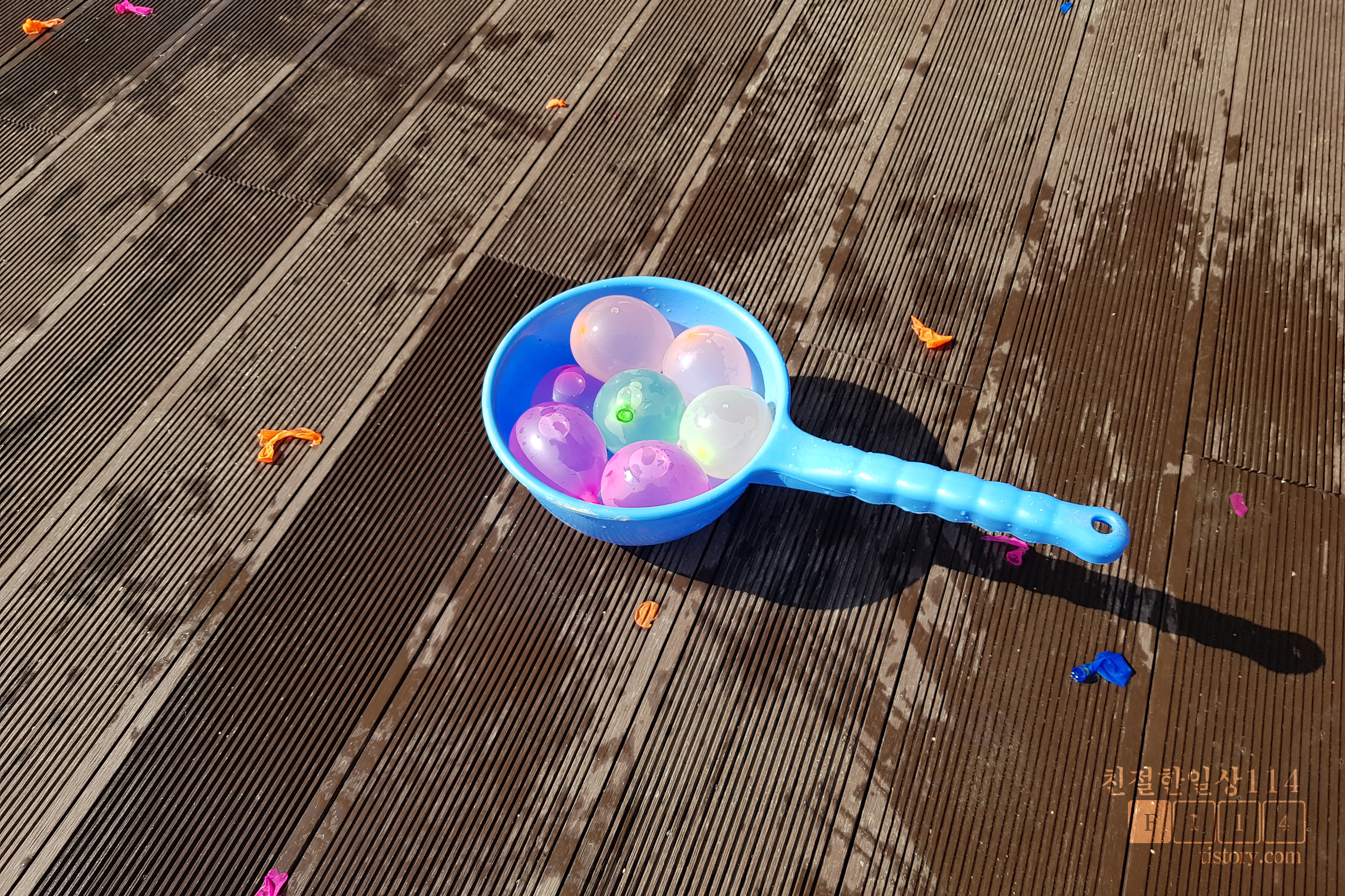 이렇게 되니 필자는 계속 물풍선을 만들기만 하고, 딸아이는 잠시 물풍선을 가지고 놀다가 기다리고를 반복하게 되었다. 필자가 생각하던 양손 가득 물풍선을 들고 던지고 노는것은 생각으로만 그치게 되었다.