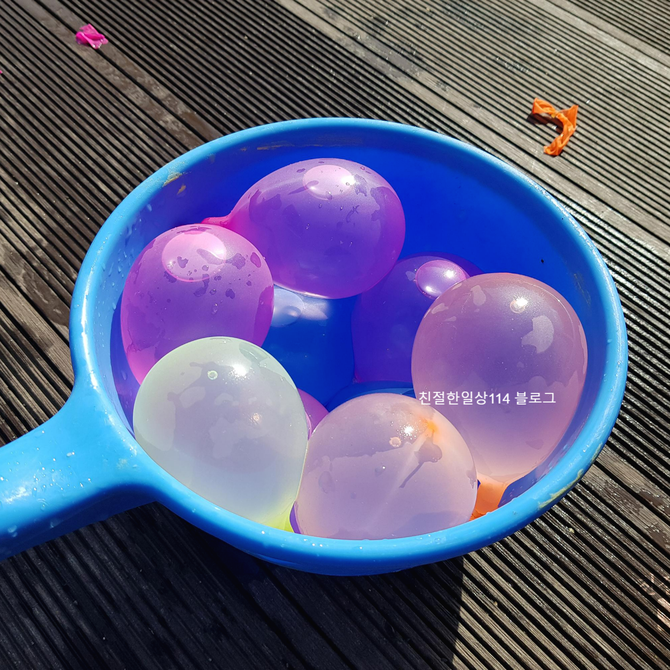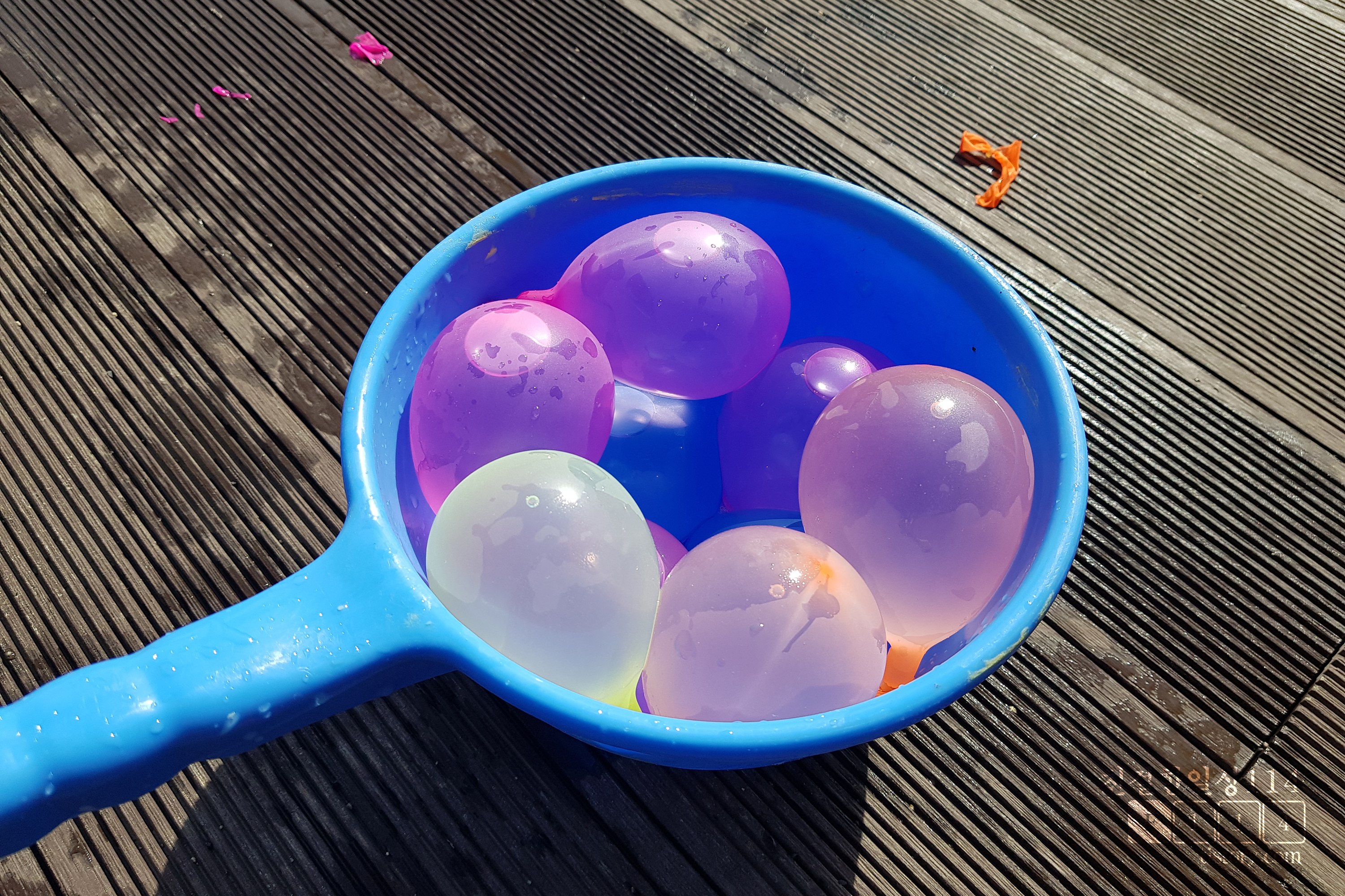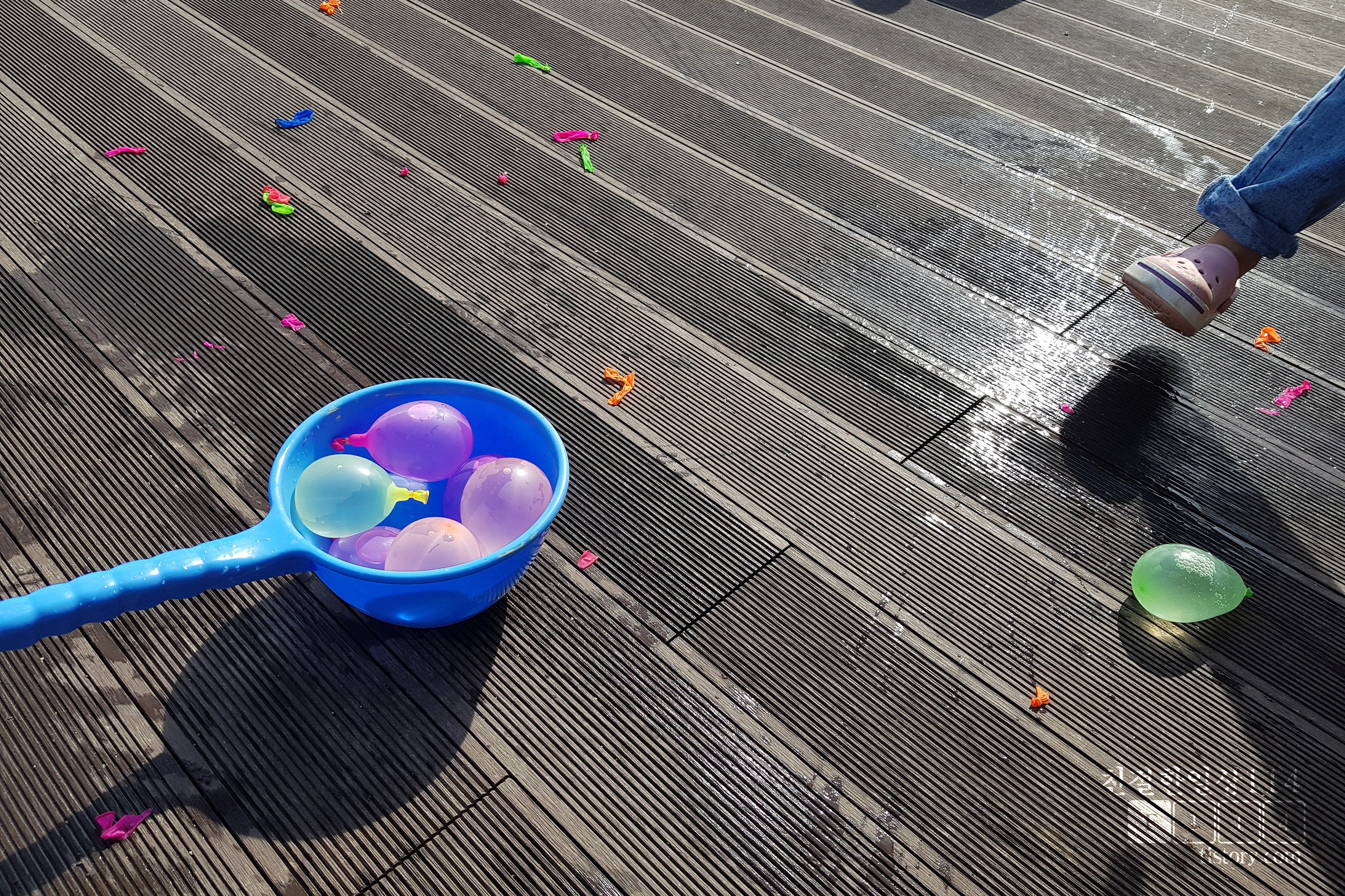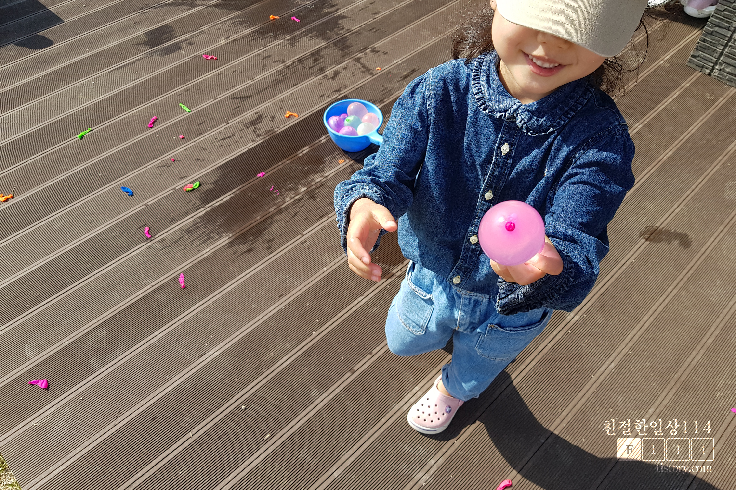 이렇게 되니 필자는 계속 물풍선을 만들기만 하고, 딸아이는 잠시 물풍선을 가지고 놀다가 기다리고를 반복하게 되었다. 필자가 생각하던 양손 가득 물풍선을 들고 던지고 노는것은 생각으로만 그치게 되었다.