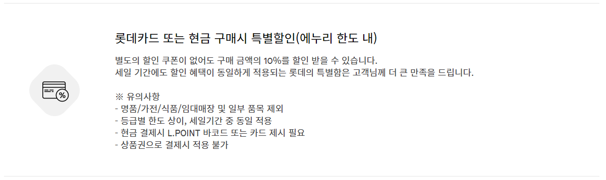 - 구매금액 포함지점: 롯데백화점 전점, 에비뉴엘, 영플라자, 아울렛, 롯데몰