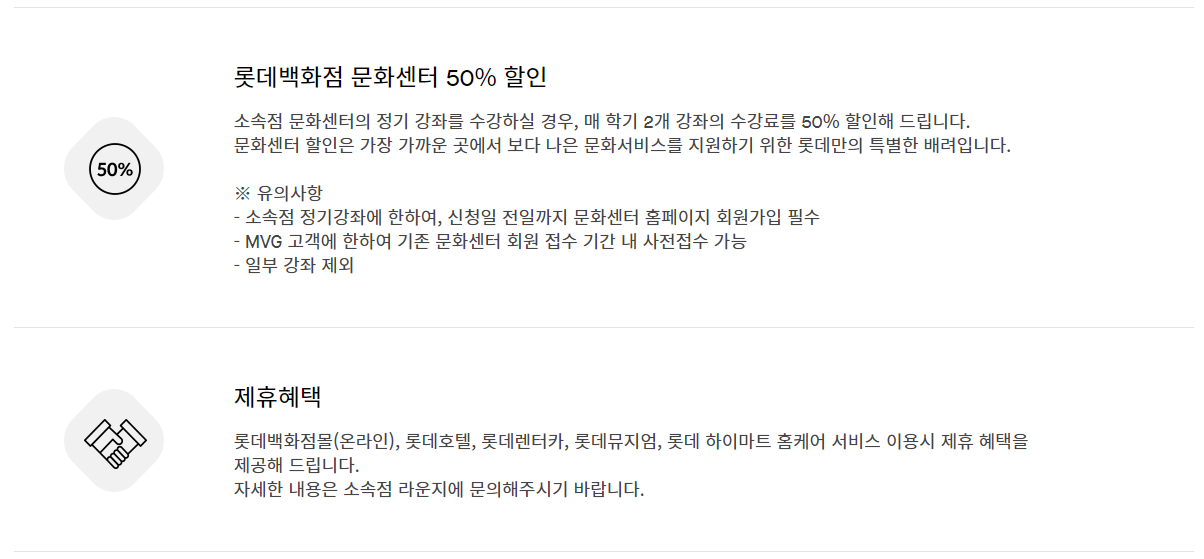 문화센터 50% 할인 제공.