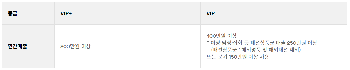 * 분기 VIP는 3개월 구매금액으로 매달 선정