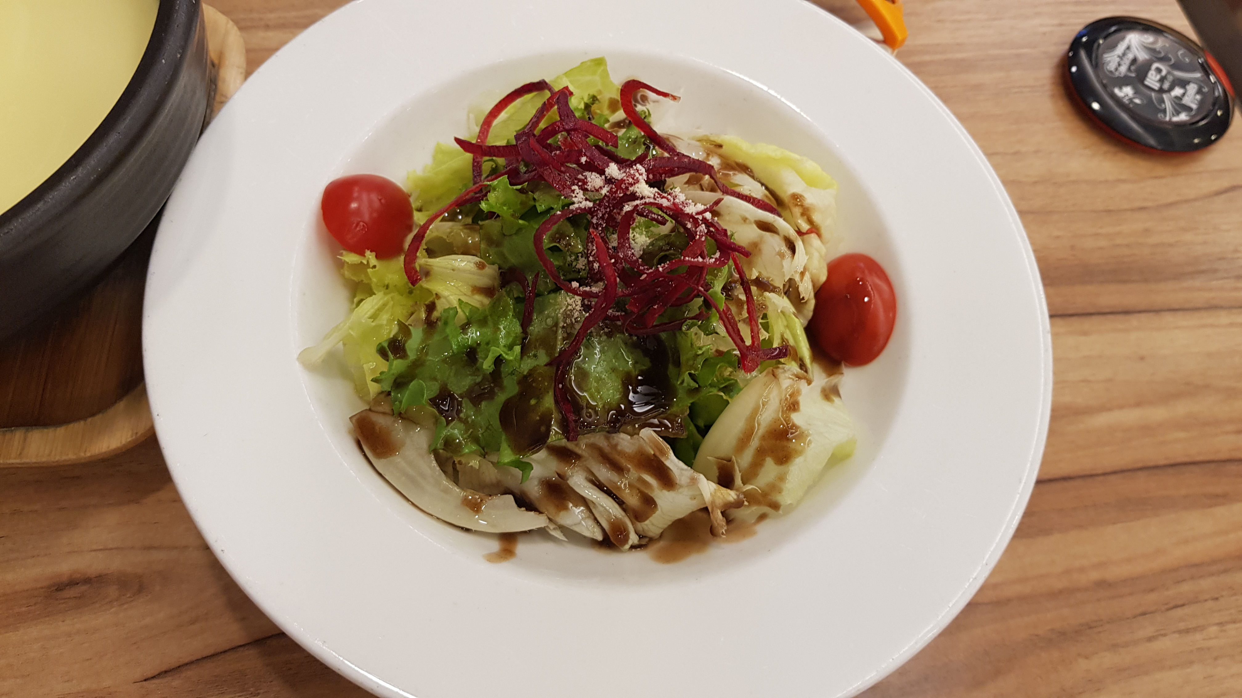 발사믹소스가 뿌려진 샐러드로 쭈꾸미를 먹기전 입맛을 돋우기 위한 에피타이저로 좋다.