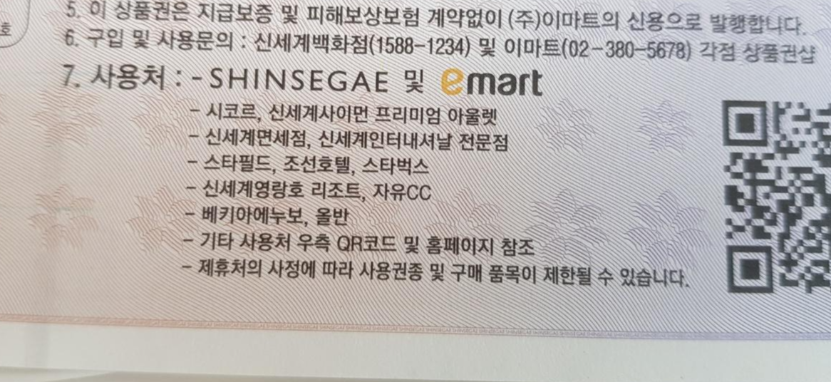 교환한 지류 상품권 뒷면을 보니 사용처가 적혀있다.