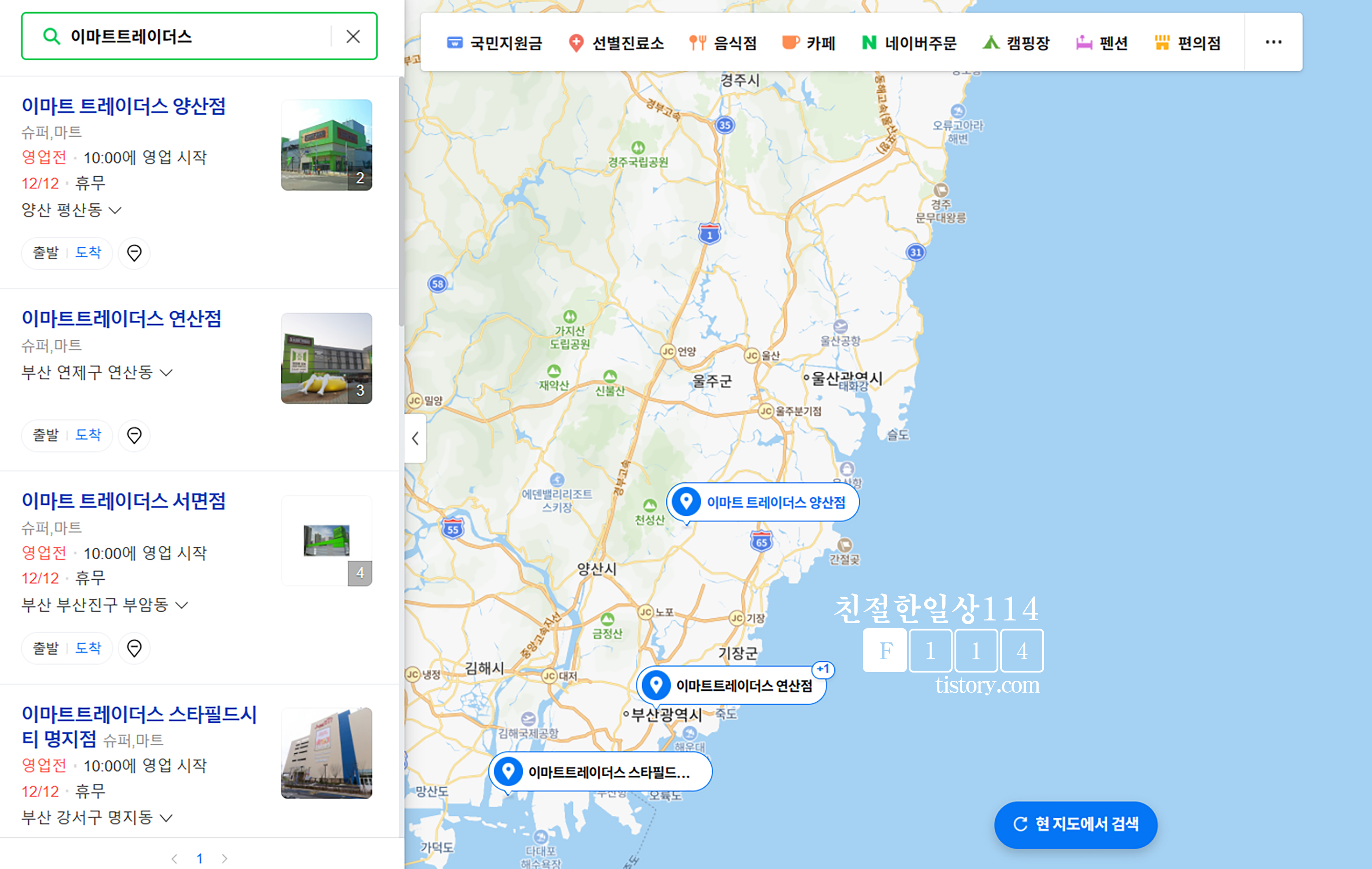신세계 모바일 상품권을 지류(종이) 상품권으로 교환은 이마트나 이마트트레이더스의 키오스크에서 교환 할 수 있다. 필자가 거주하는 울산에서 그중에서도 집에서 가까이 있는 이미트와 이마트트레이더스를 찾아본다.