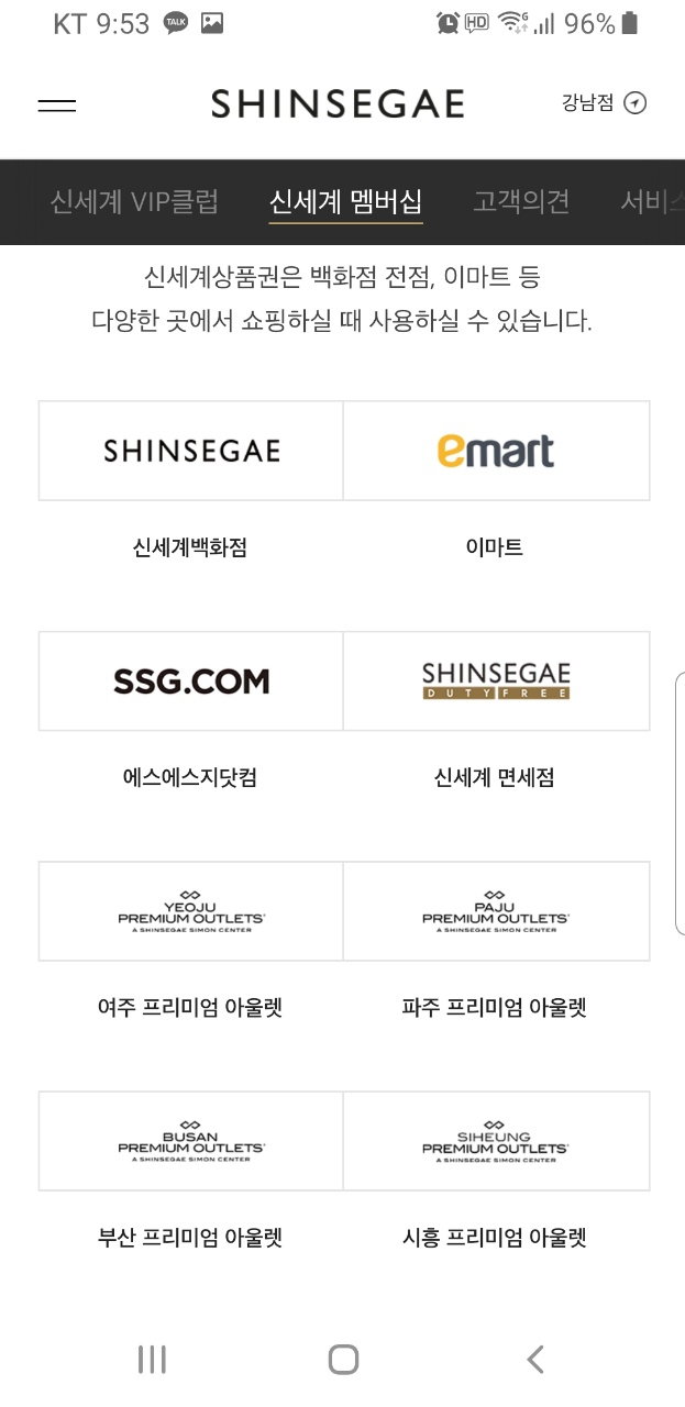 신세계 상품권을 사용 할 수 있는 곳이 정말 광범위하다. 사용처가 여러군데 있으면 좋긴하지만 그래봤자 상품권, 왠만해서는 백화점이나 생필품 살 수 있는 이마트에서 사용하게 될 것 같다.