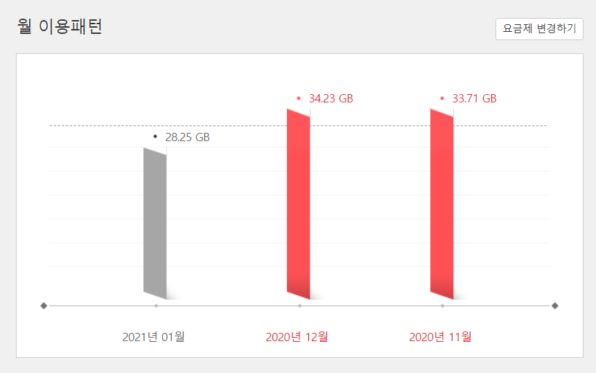 필자는 한달 총제공 데이터 100G 이며 이렇게 핸드폰 모바일 핫스팟으로 집 인터넷, TV 유튜브를 이용하는데 월 평균 32G를 사용하고 있다.